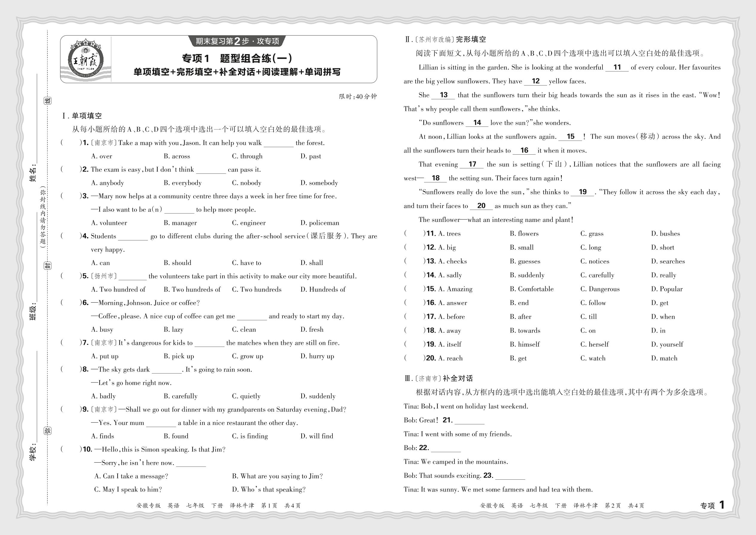 2024春下册七年级英语译林牛津版 期末专项卷安徽版·题型组合练(一)