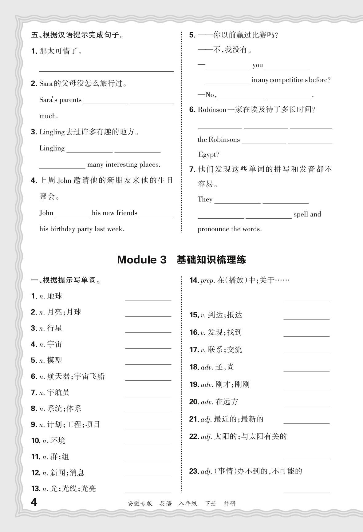 2024春下册八年级英语外研版 期末过课本安徽版·Module 3 基础知识梳理练