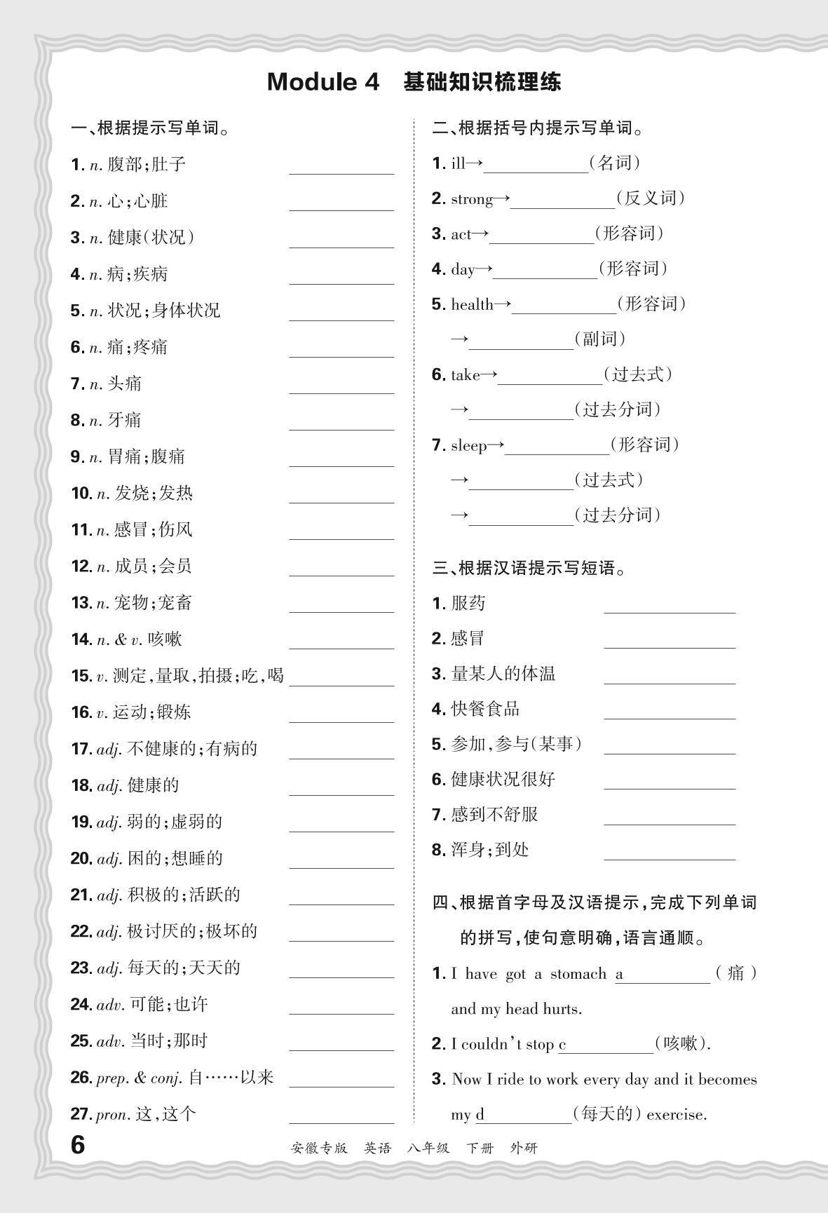2024春下册八年级英语外研版 期末过课本安徽版·Module 4 基础知识梳理练
