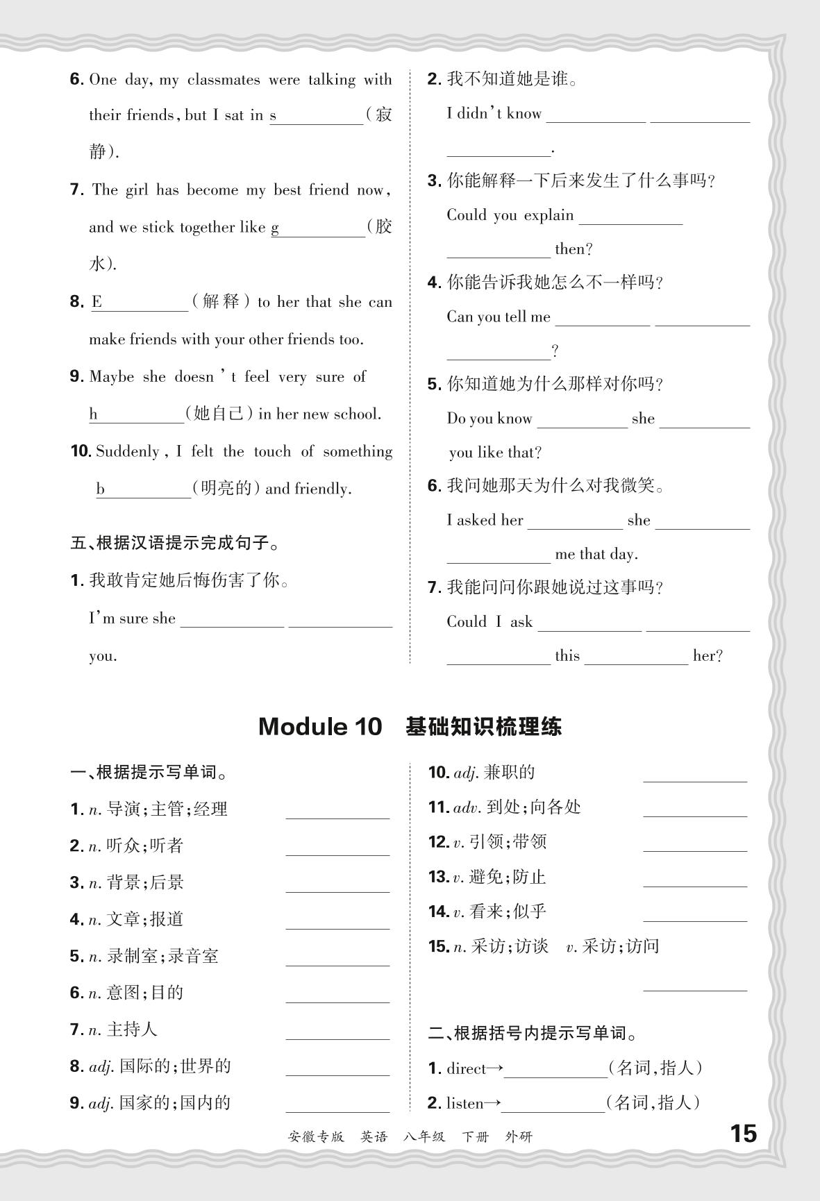 2024春下册八年级英语外研版 期末过课本安徽版·Module 10 基础知识梳理练