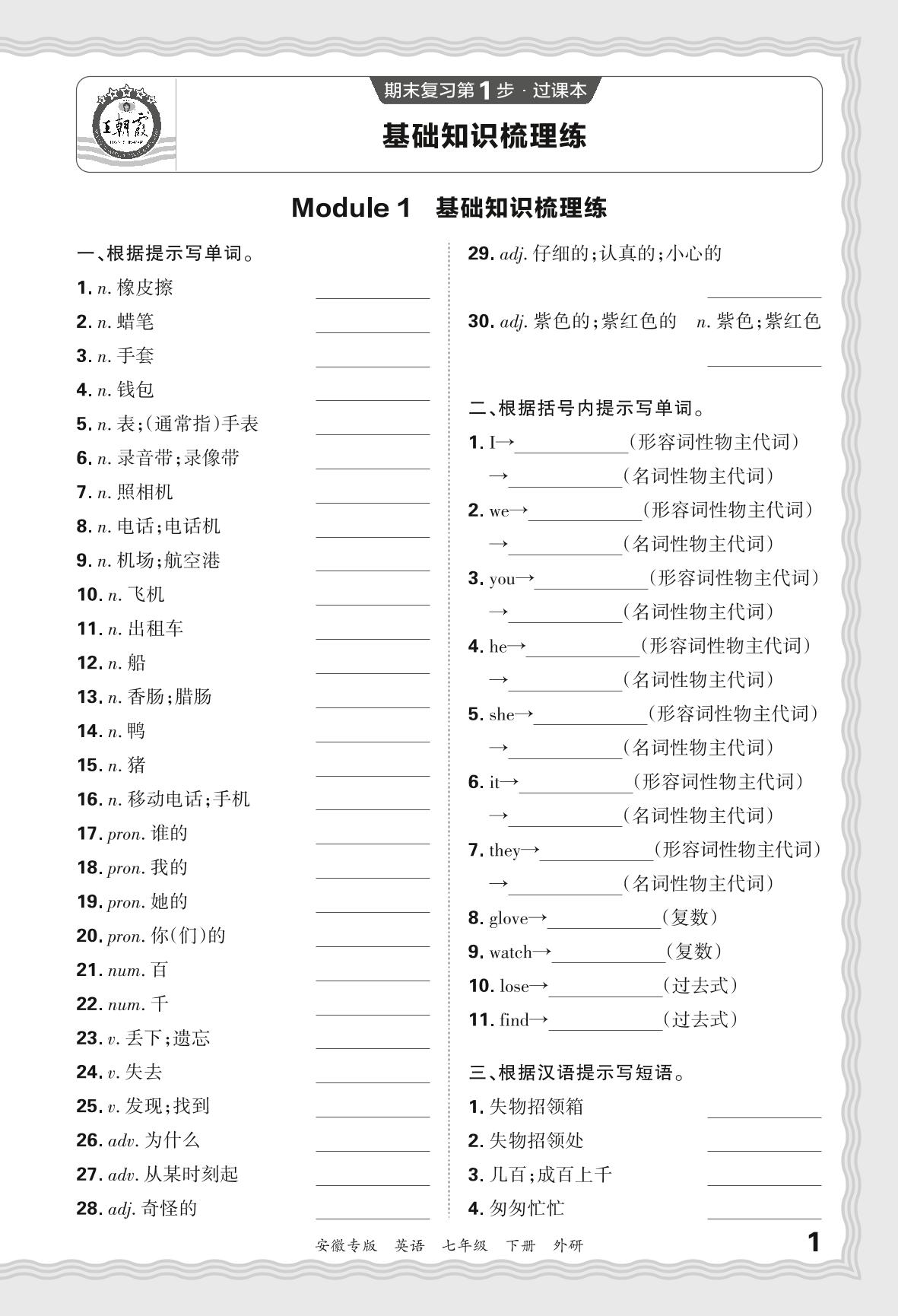 2024春下册七年级英语外研版 期末过课本安徽版·Module 1 基础知识梳理练