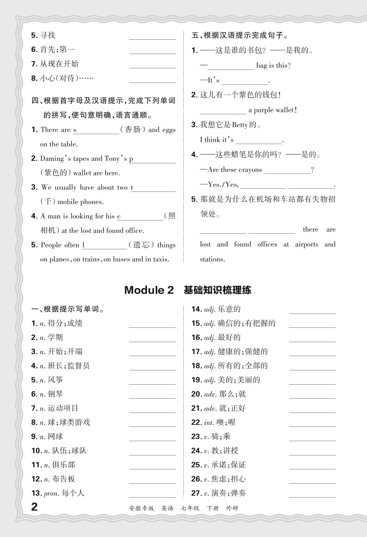 2024春下册七年级英语外研版 期末过课本安徽版·Module 2 基础知识梳理练
