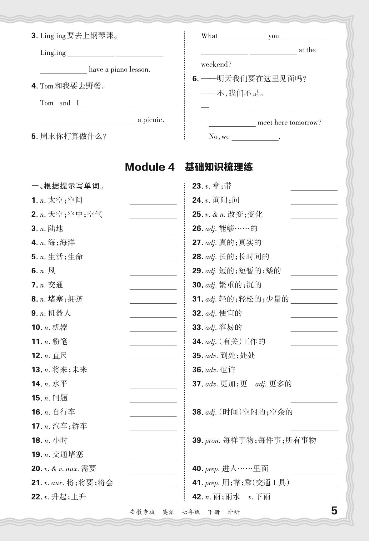 2024春下册七年级英语外研版 期末过课本安徽版·Module 4 基础知识梳理练