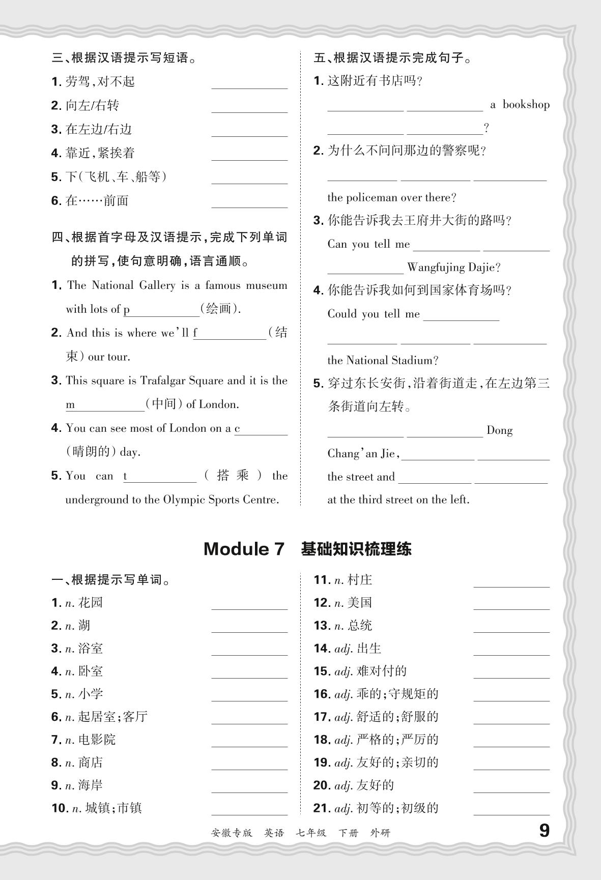 2024春下册七年级英语外研版 期末过课本安徽版·Module 7 基础知识梳理练