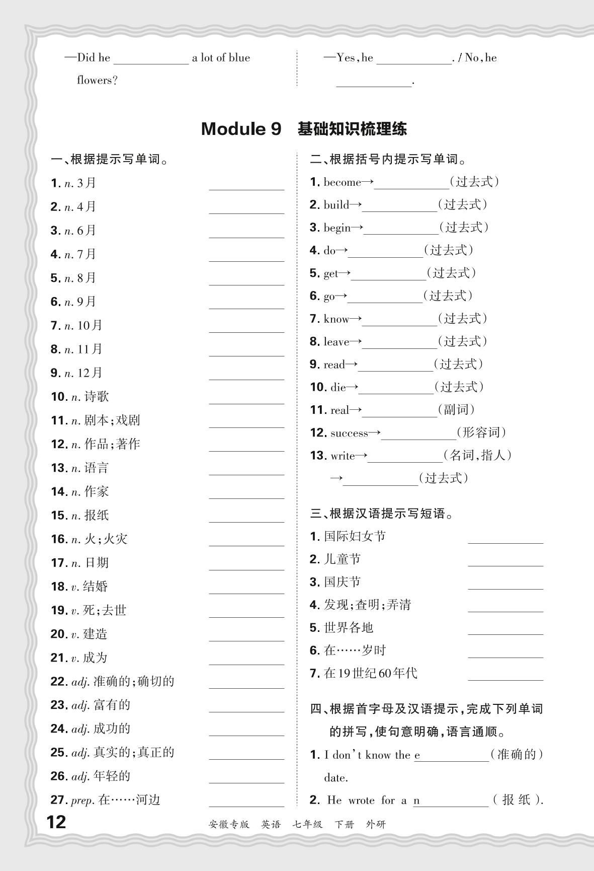 2024春下册七年级英语外研版 期末过课本安徽版·Module 9 基础知识梳理练