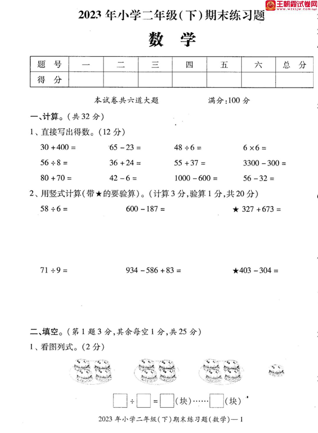 湖南省邵阳市隆回县2022-2023学年下学期期末练习题二年级数学(苏教版)