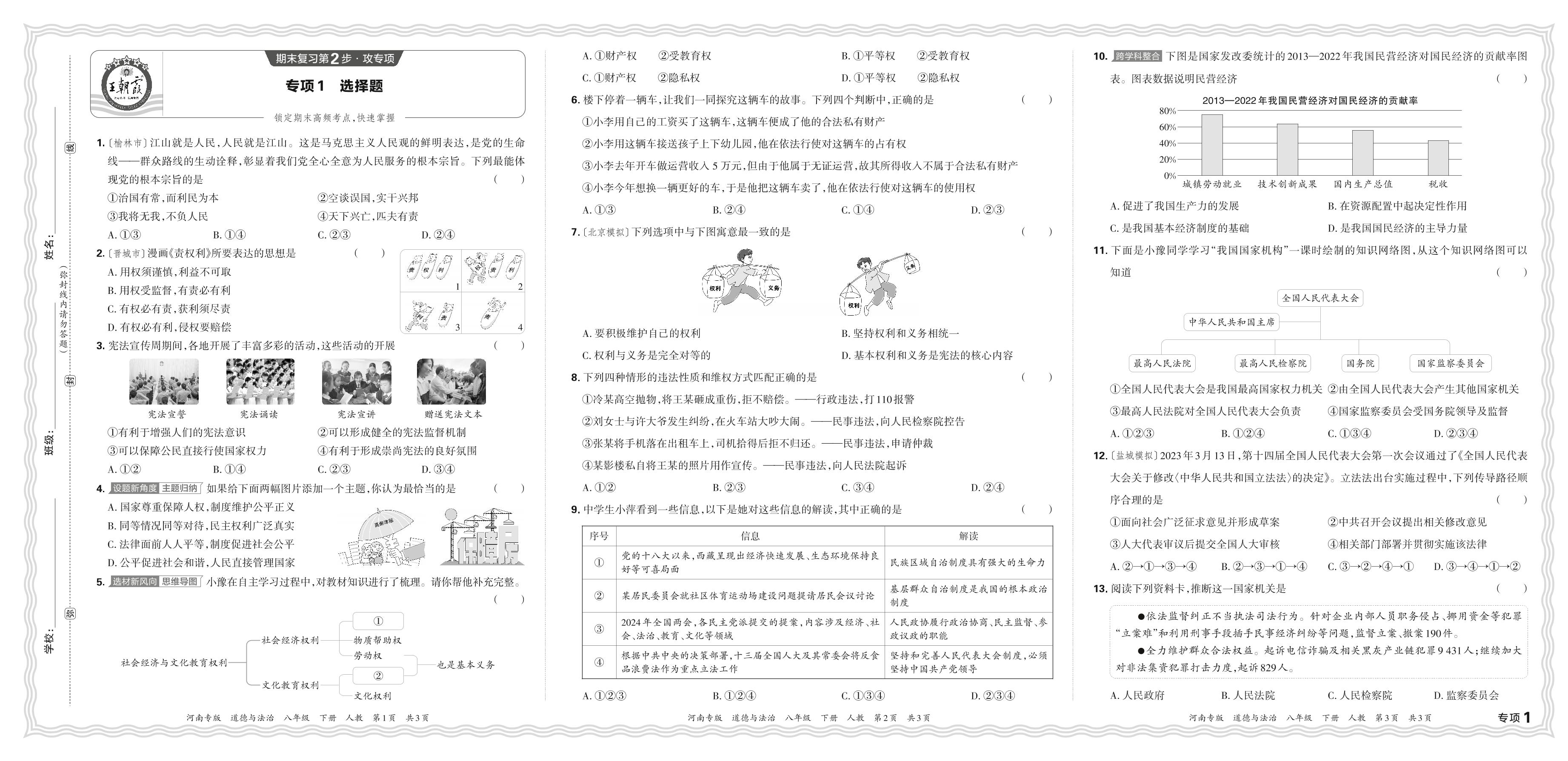 2024春下册八年级道德与法治人教版 期末专项卷河南版·选择题【1】