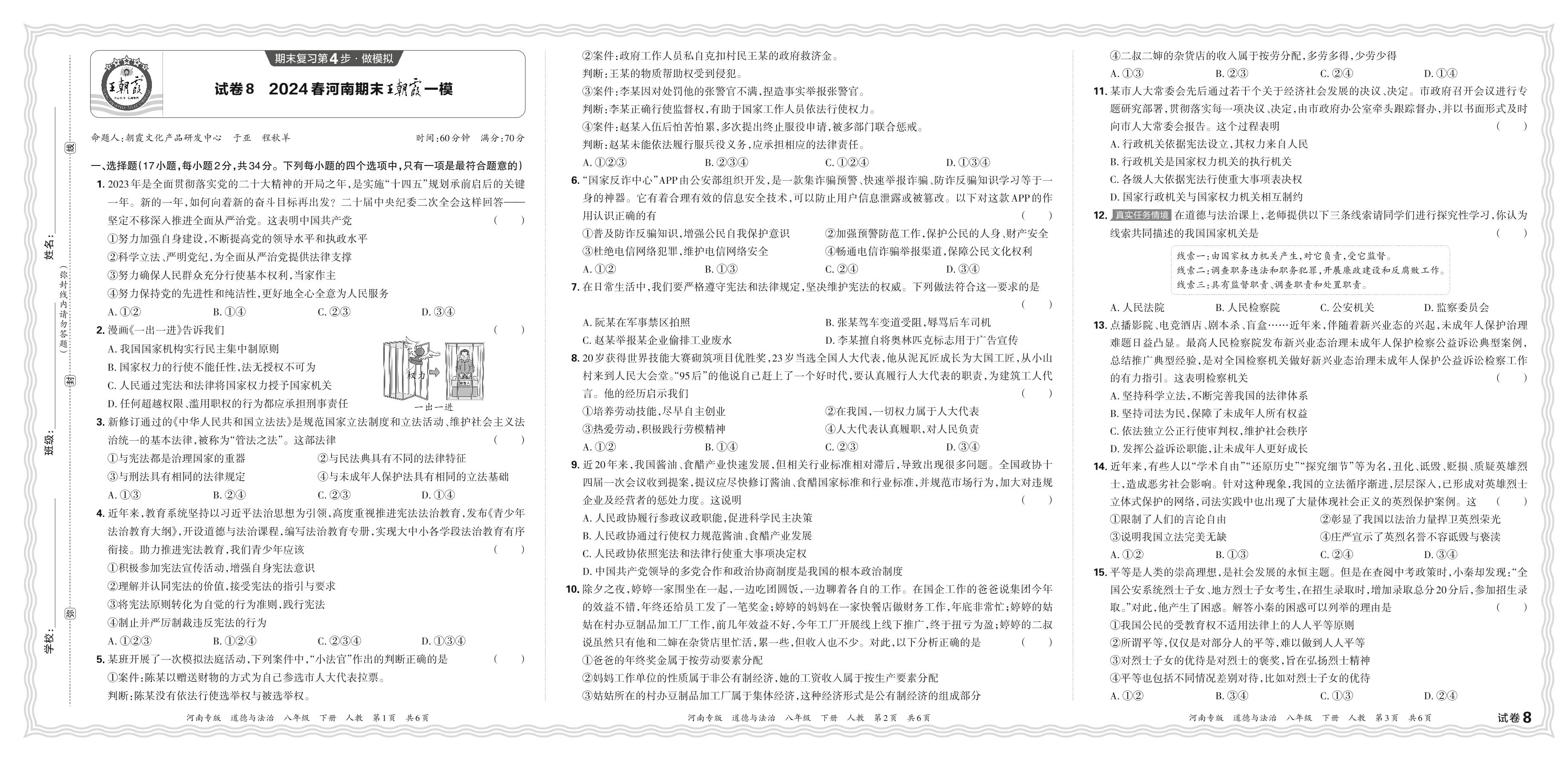2024春下册八年级道德与法治人教版 河南期末王朝霞一模