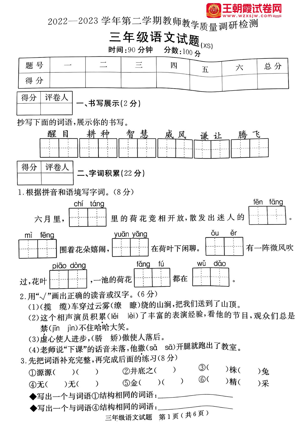河北省保定市徐水区2022-2023学年第二学期期末教师教学质量调研检测试题三年级语文(人教版)