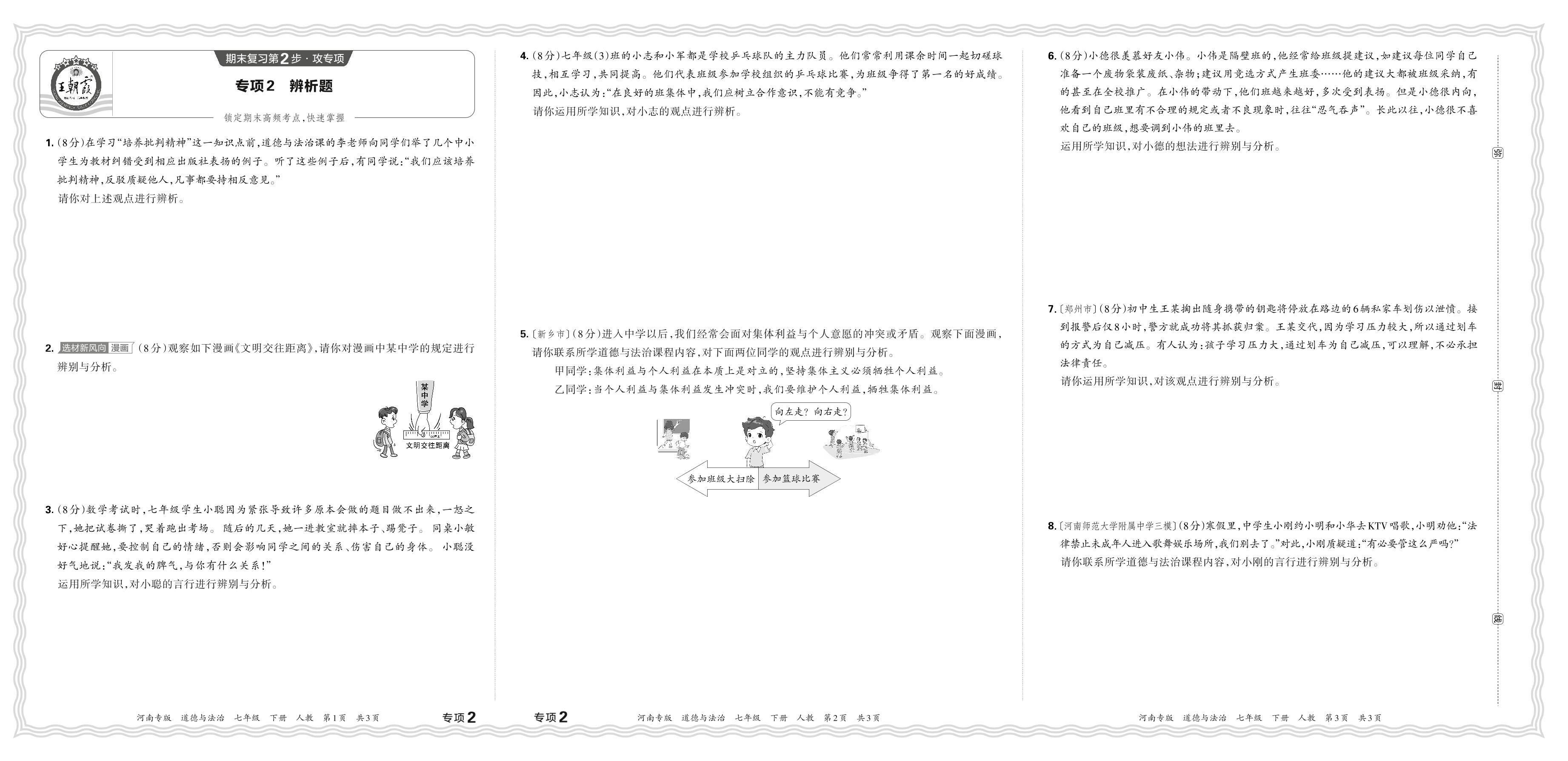 2024春下册七年级道德与法治人教版 期末专项卷河南版·辨析题【2】