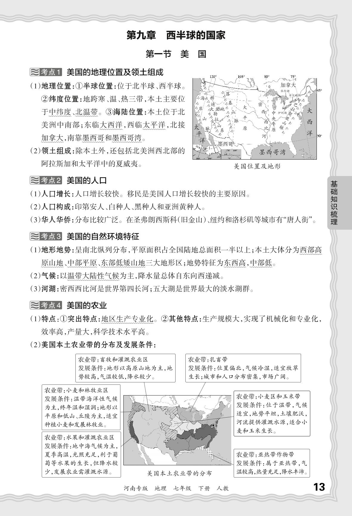 2024春下册七年级地理人教版 期末过课本河南版·基础知识梳理 第九章 西半球的国家