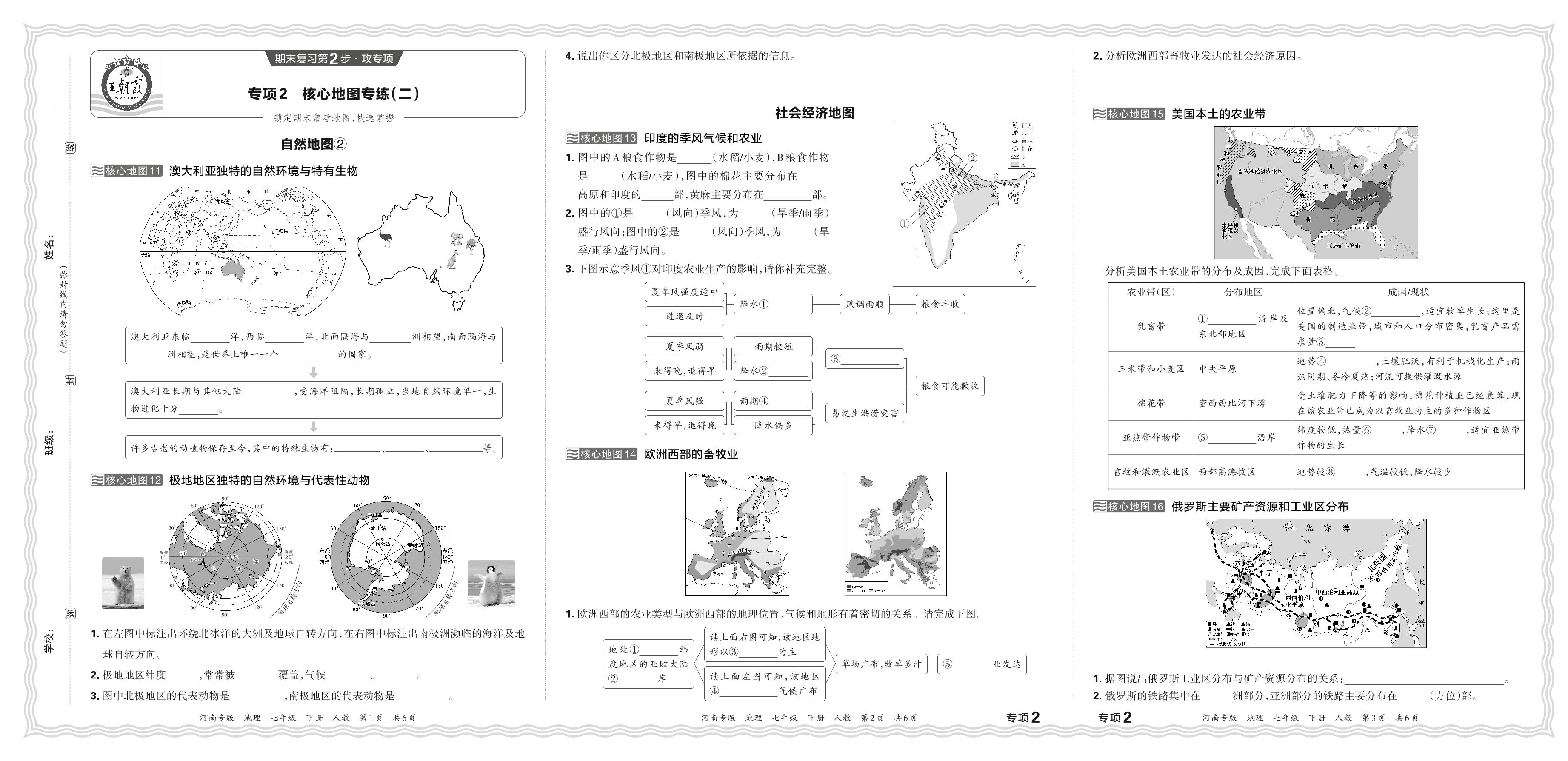 2024春下册七年级地理人教版 期末专项卷河南版·核心地图专练(二)