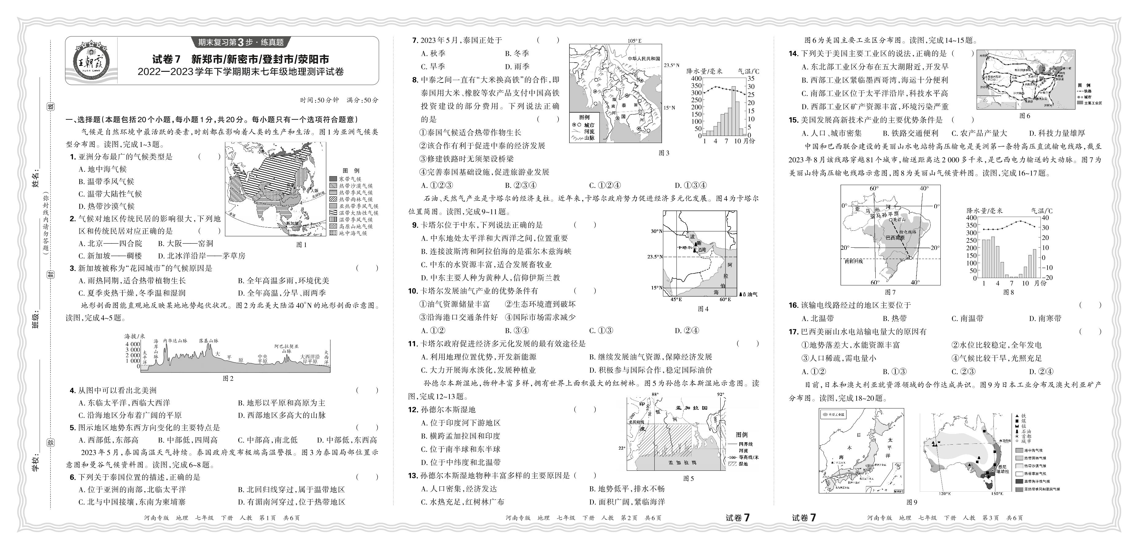 河南省新郑市、新密市、登封市、荥阳市2022-2023学年下学期期末七年级地理测评试卷(人教版)【7】
