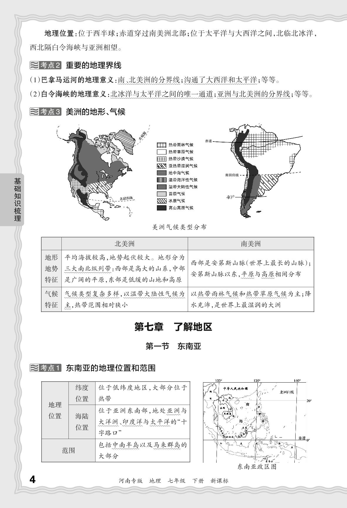 2024春下册七年级地理新课标版 期末过课本河南版·基础知识梳理 第七章 了解地区