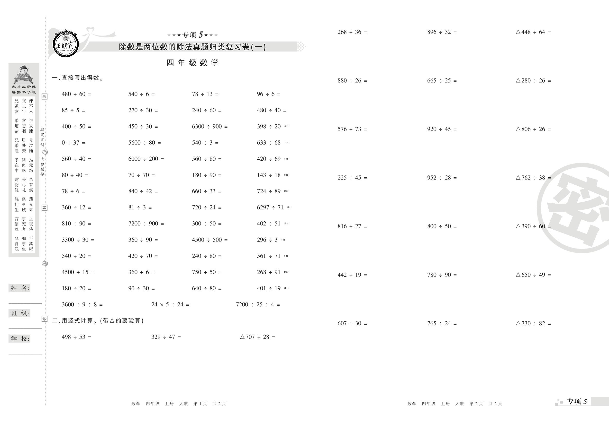 王朝霞期末专项卷——除数是两位数的除法真题归类复习四年级上册数学(人教版)_R210804144022【0】