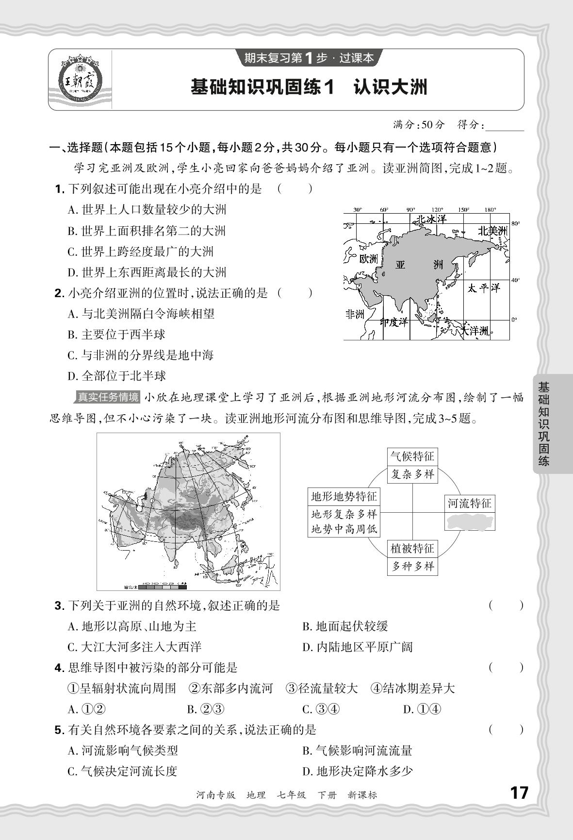 2024春下册七年级地理新课标版 期末过课本河南版·基础知识巩固练 认识大洲【1】