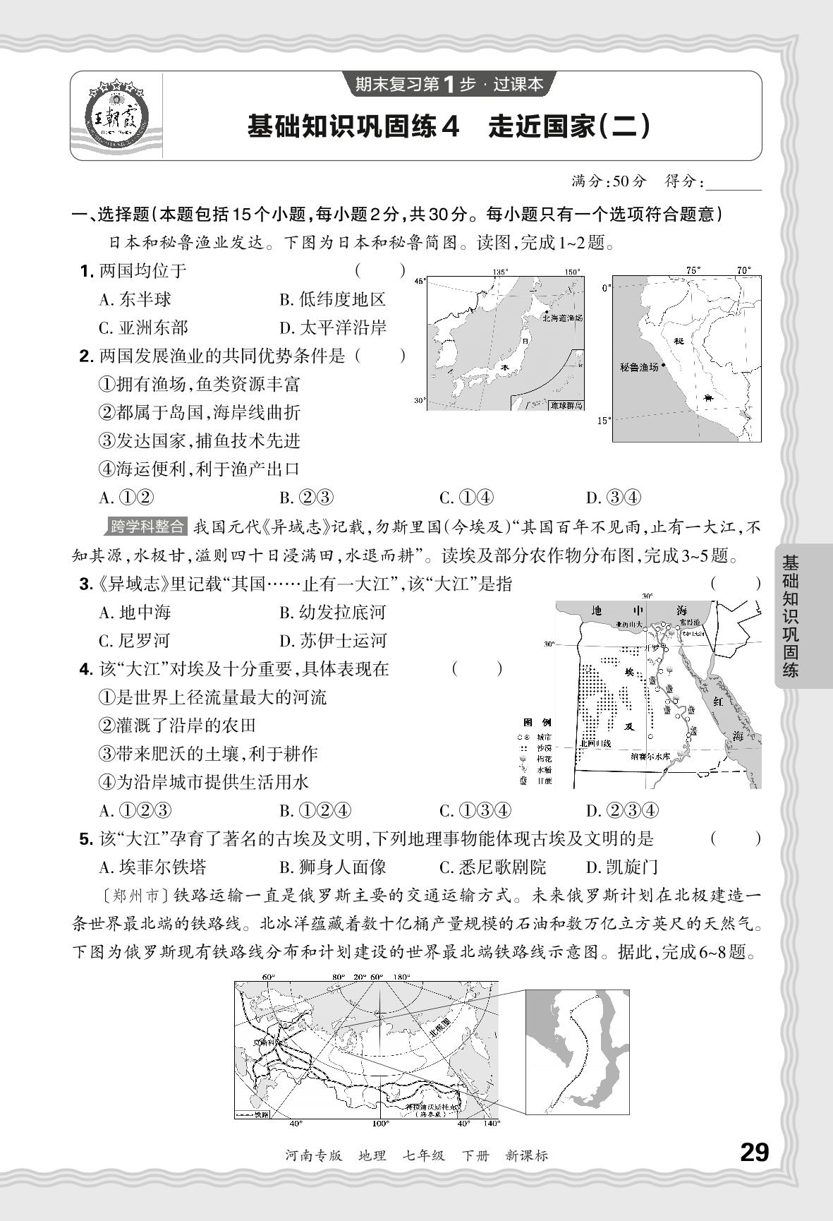 2024春下册七年级地理新课标版 期末过课本河南版·基础知识巩固练 走近国家(二)【4】