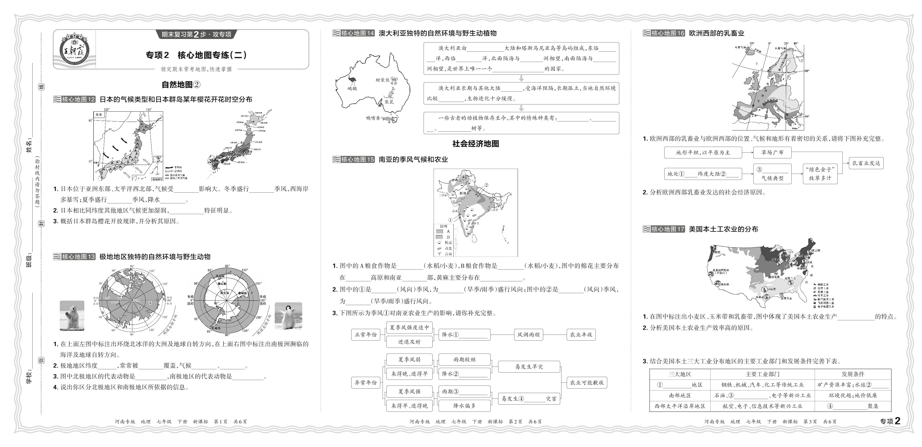 2024春下册七年级地理新课标版 期末专项卷河南版·核心地图专练(二)