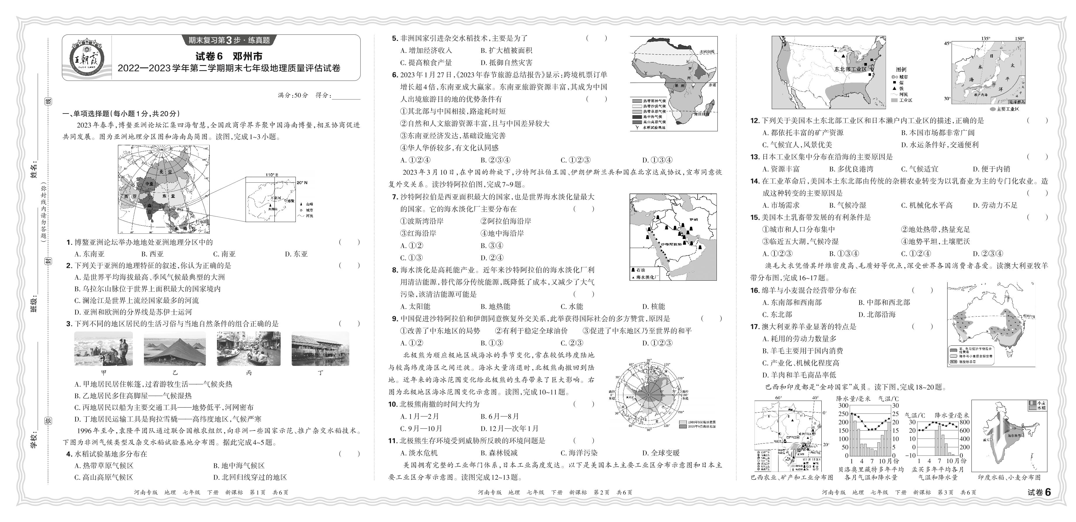 河南省邓州市2022-2023学年第二学期期末七年级地理质量评估试卷(新课标版)【6】