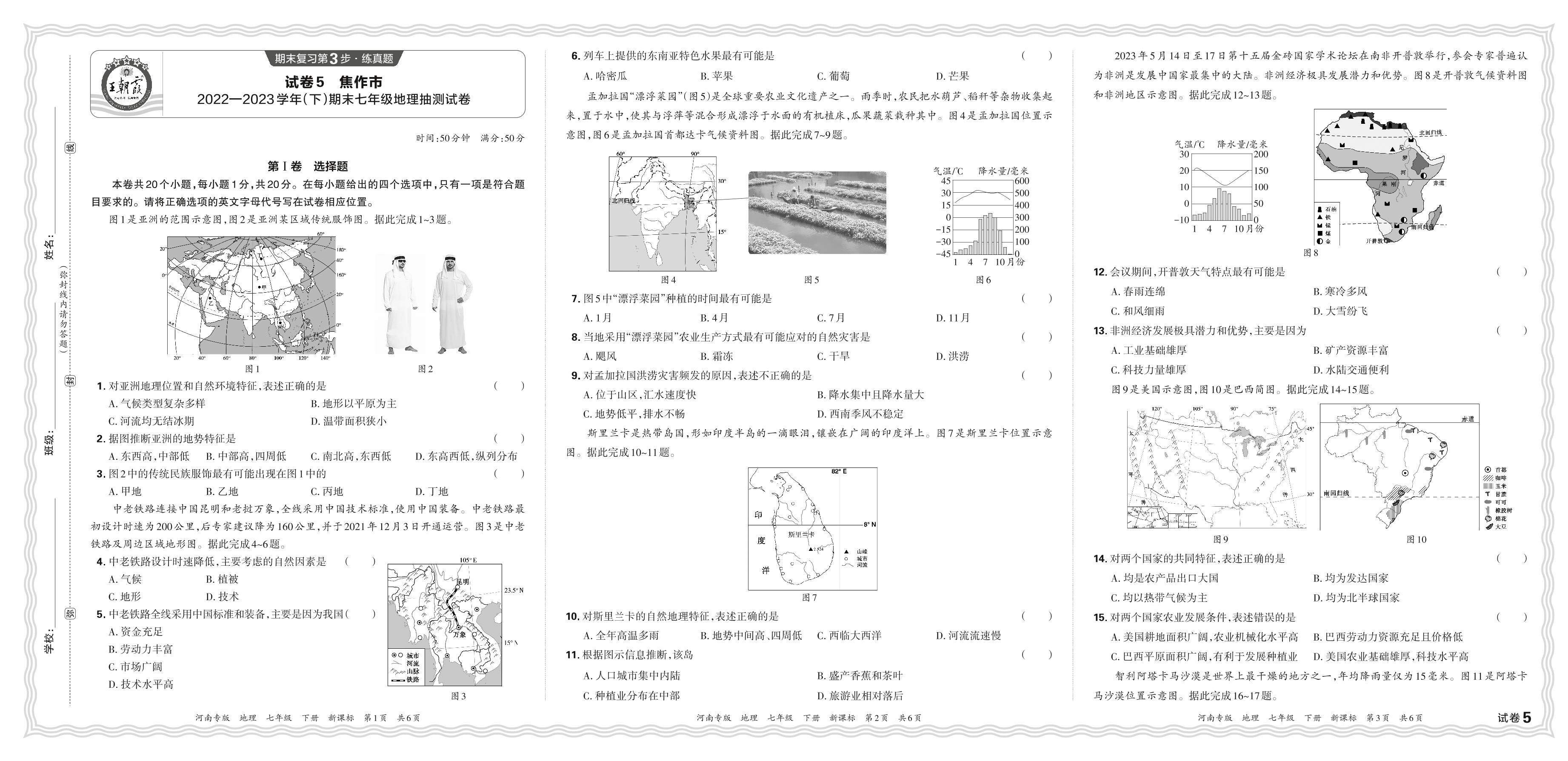 七年级地理新课标版下册期末卷