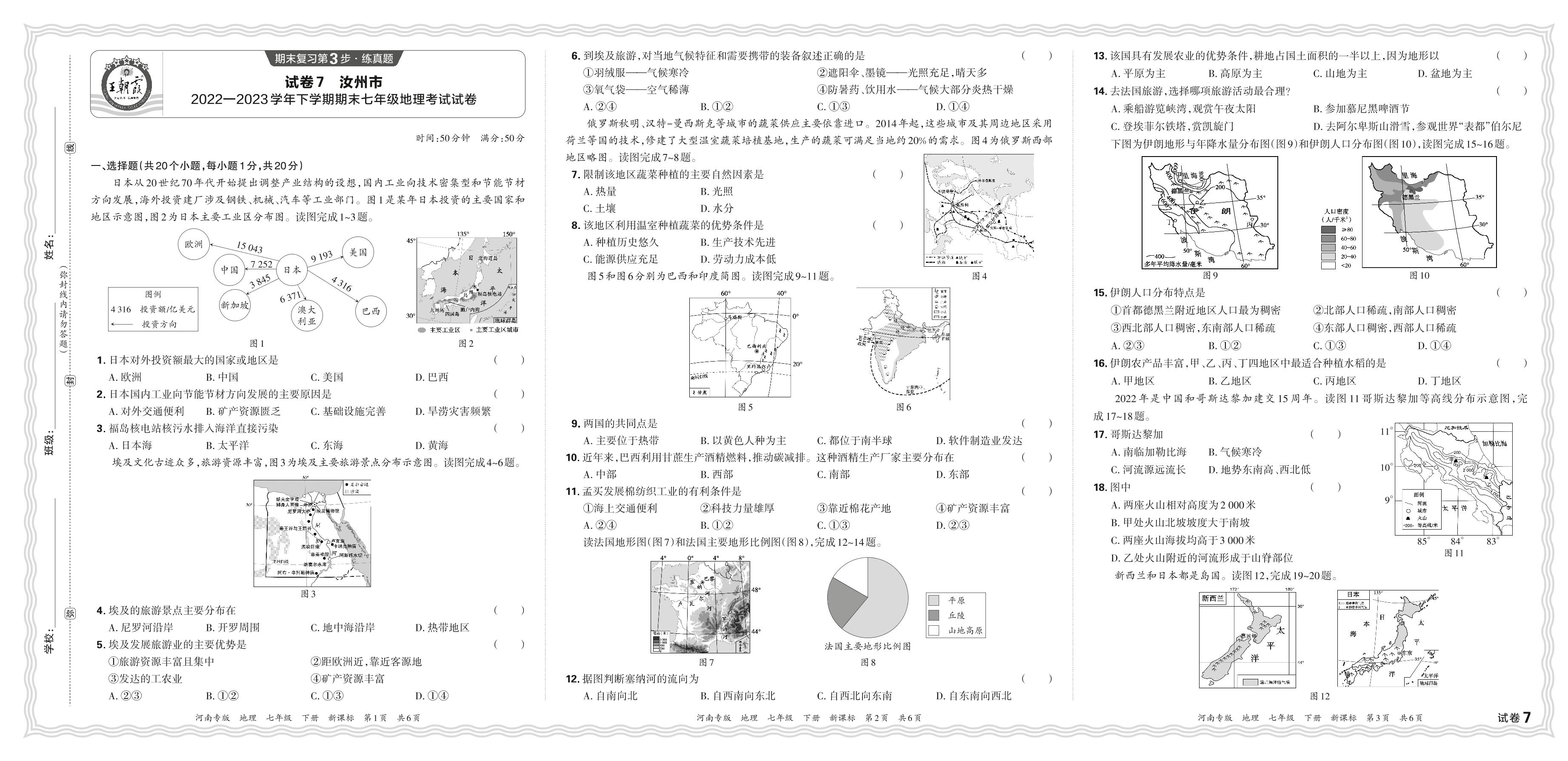 河南省汝州市2022-2023学年下学期期末七年级地理考试试卷(新课标版)【7】