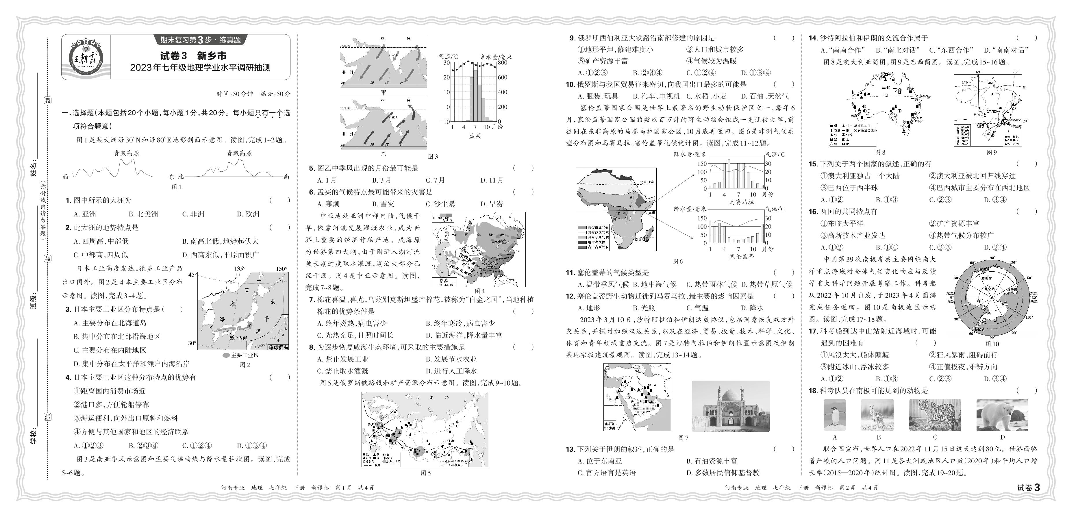 七年级地理新课标版下册期末卷