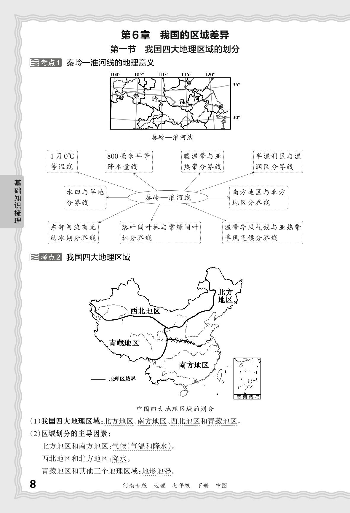 2024春下册七年级地理中图版 期末过课本河南版·基础知识梳理 第6章 我国的区域差异