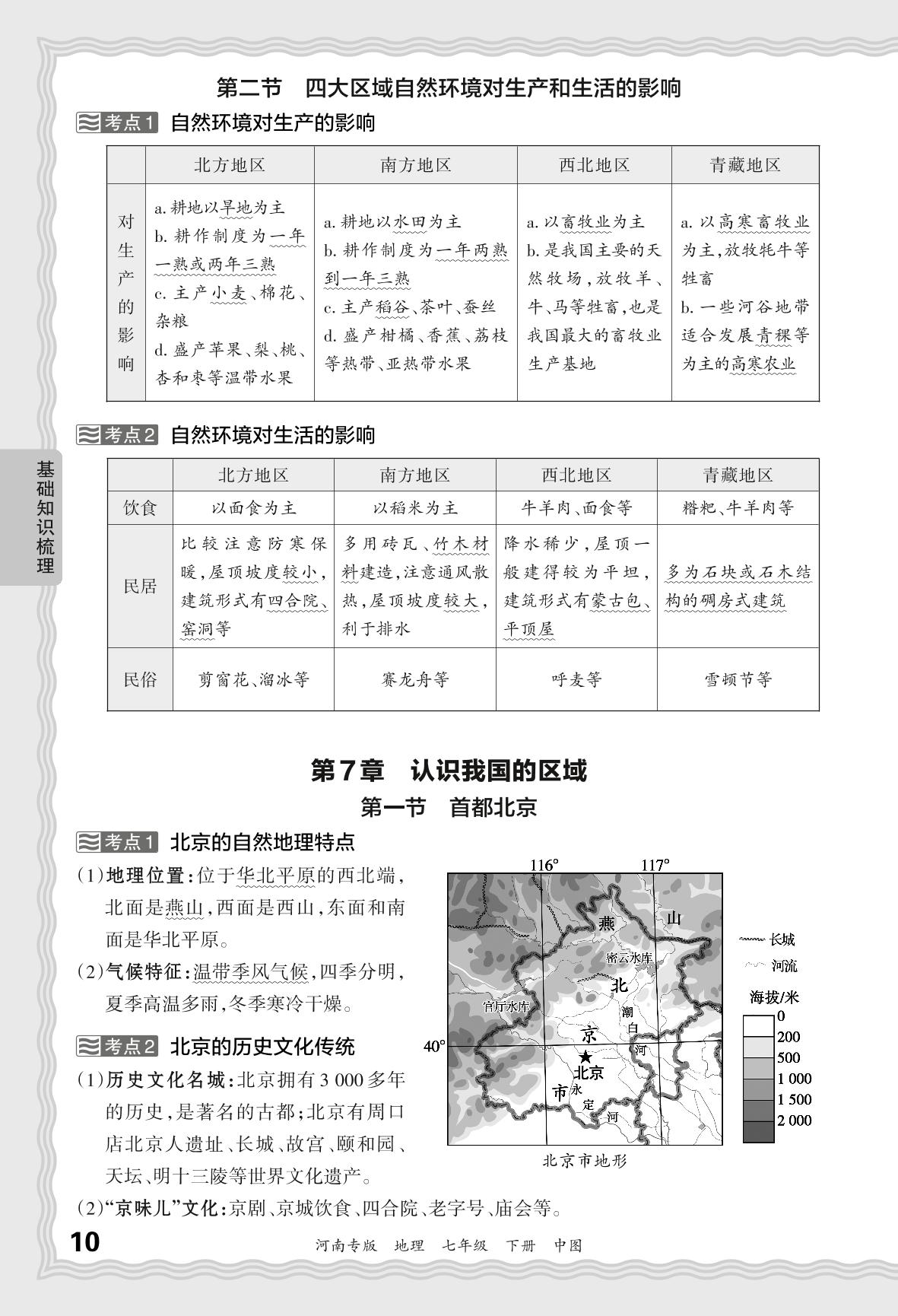 2024春下册七年级地理中图版 期末过课本河南版·基础知识梳理 第7章 认识我国的区域