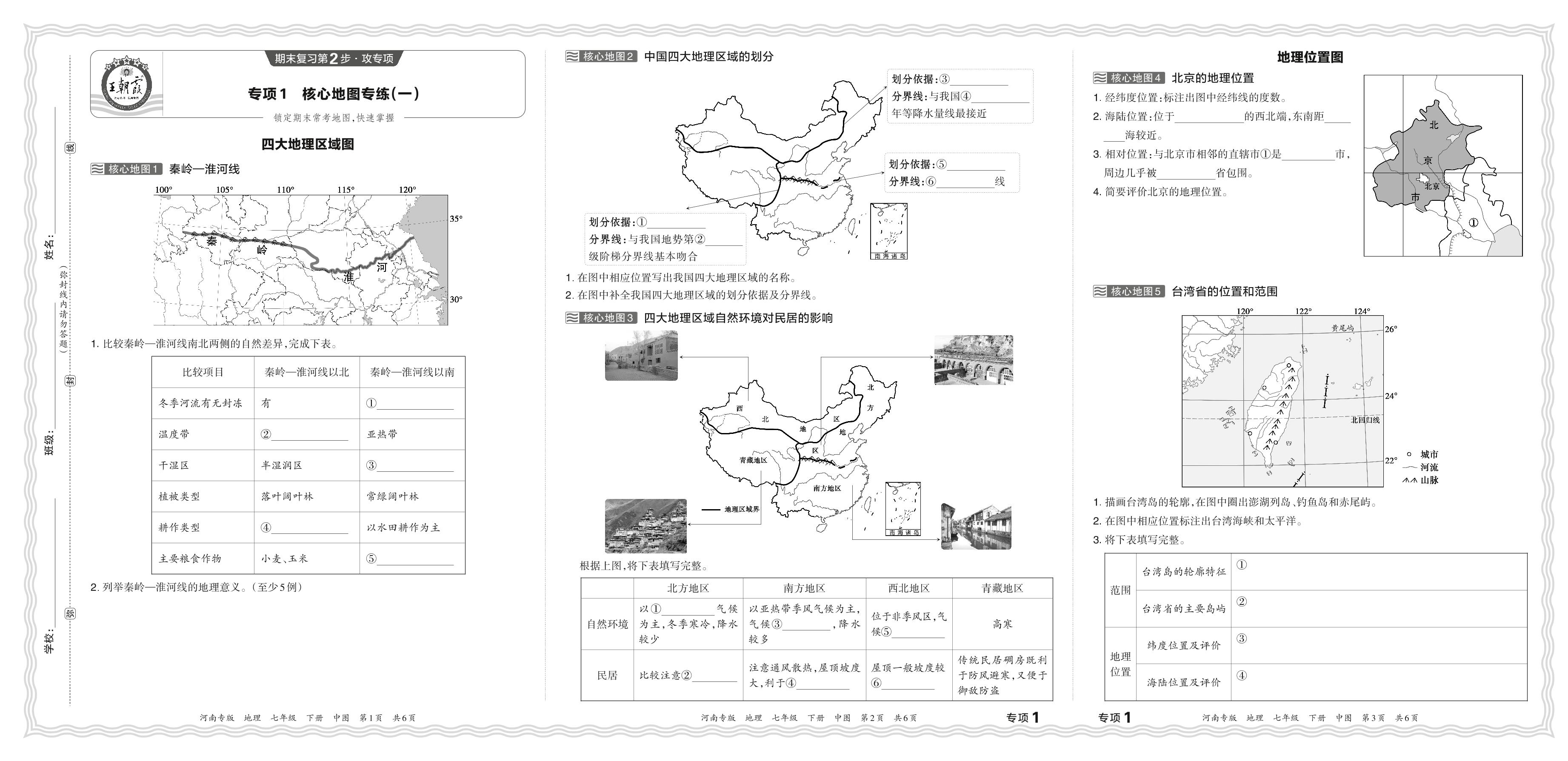 2024春下册七年级地理中图版 期末专项卷河南版·核心地图专练(一)