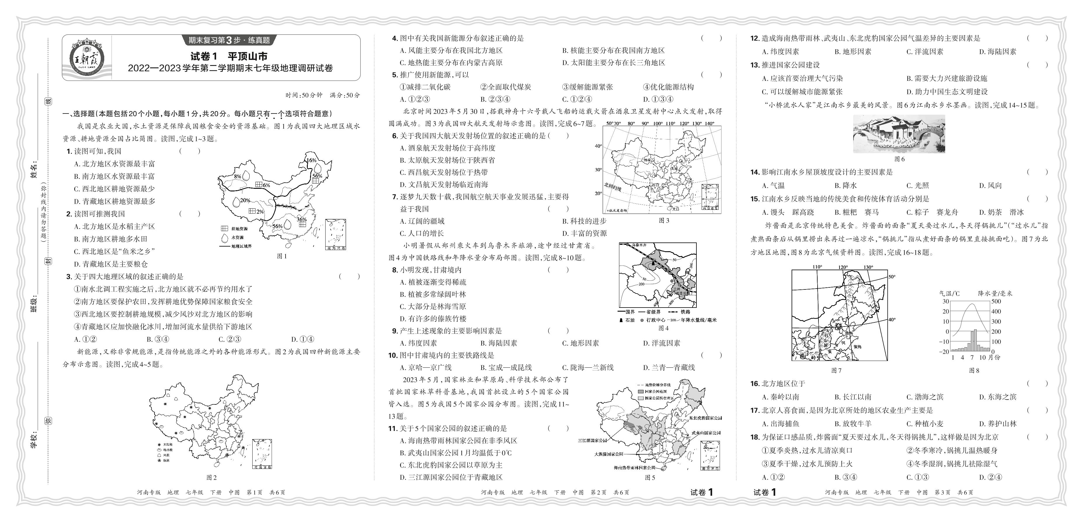 河南省平顶山市2022-2023学年第二学期期末七年级地理调研试卷(中图版)【1】