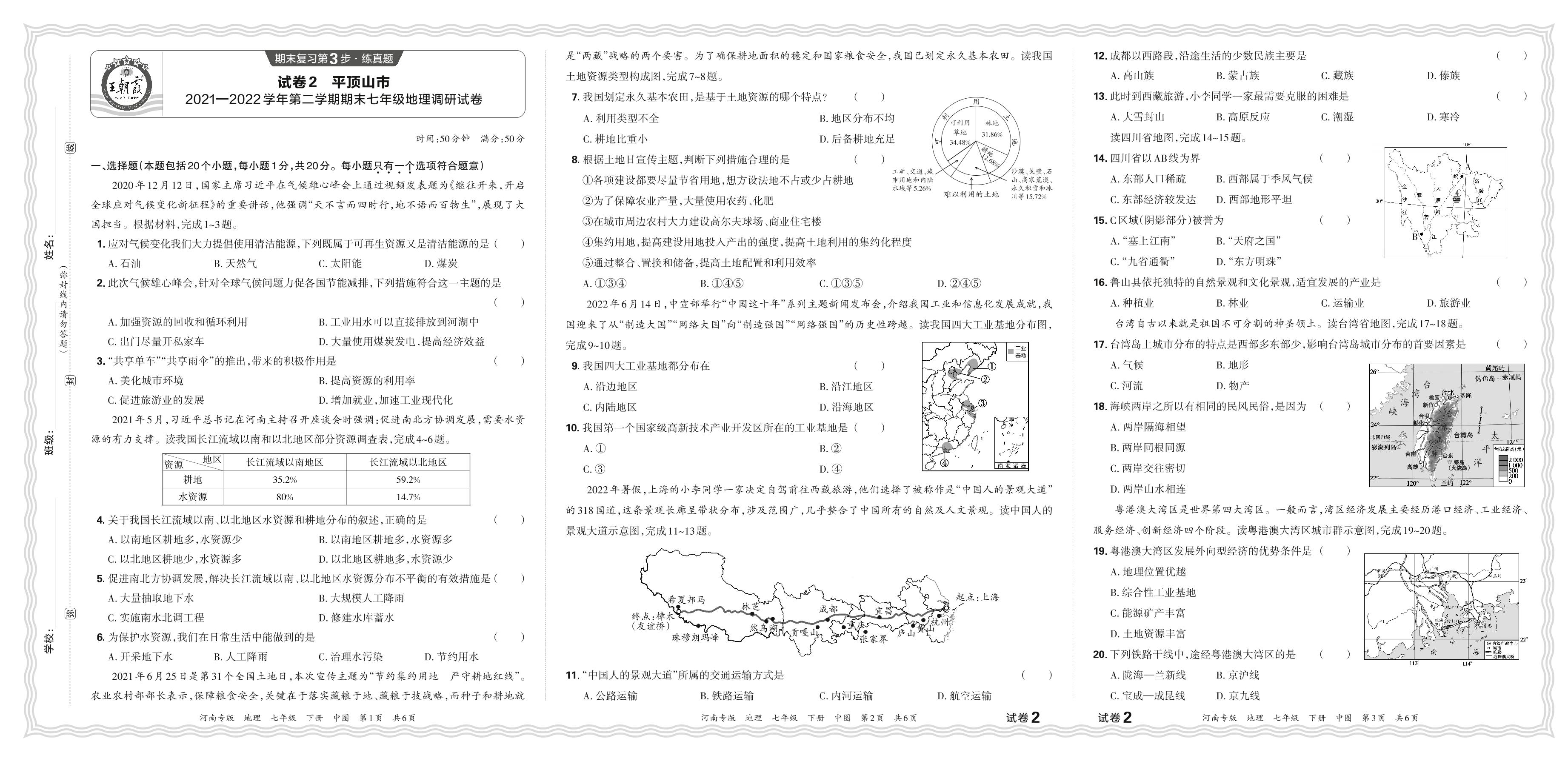 河南省平顶山市2021-2022学年第二学期期末七年级地理调研试卷(中图版)【2】