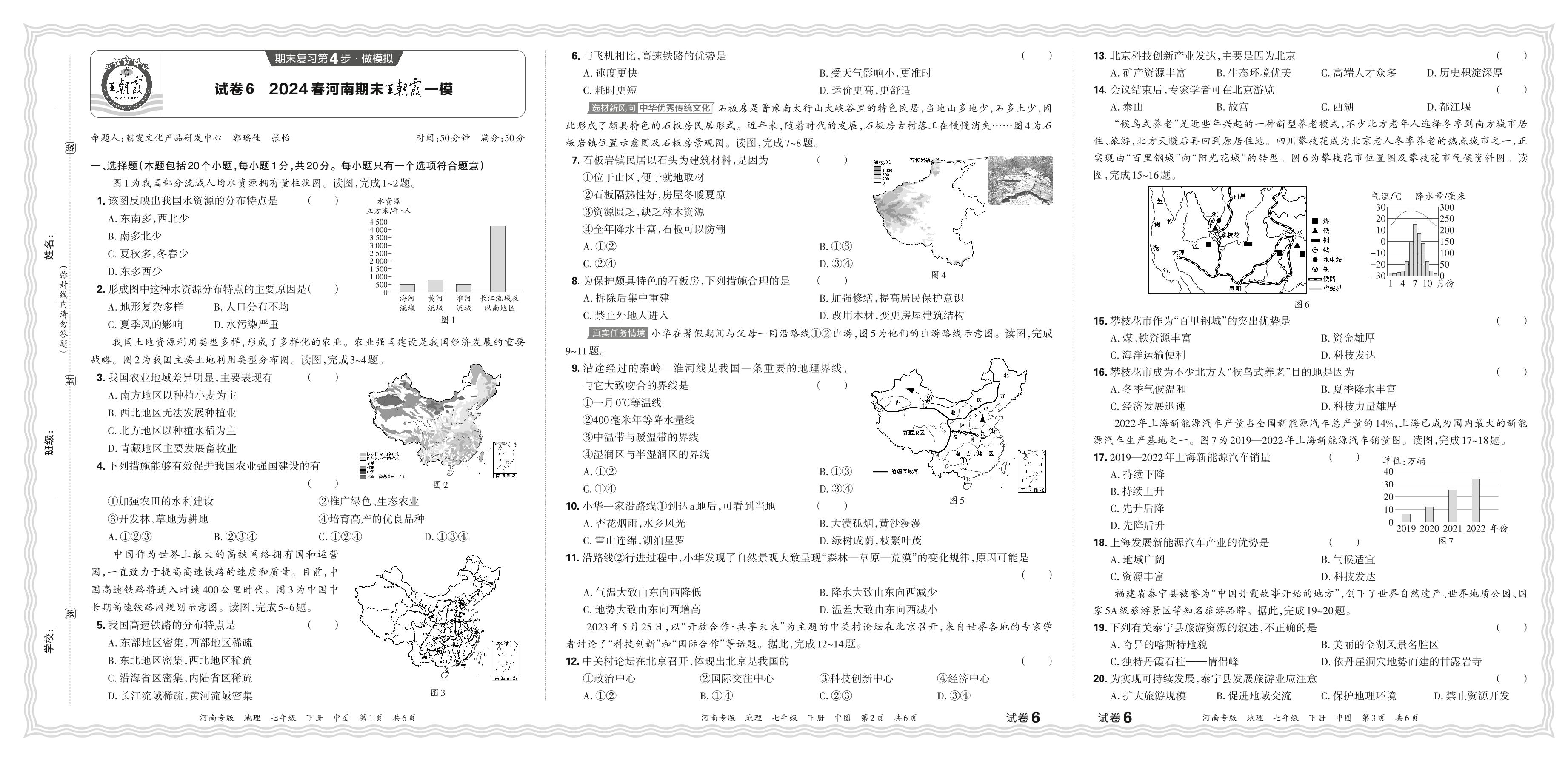 2024春下册七年级地理中图版 河南期末王朝霞一模