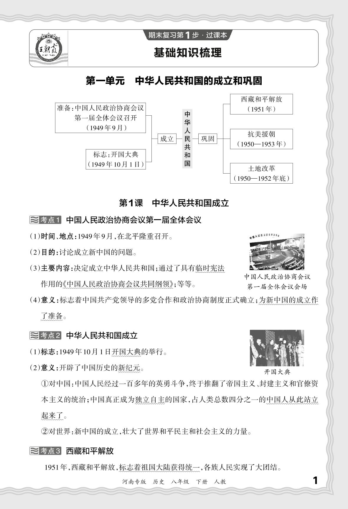 2024春下册八年级历史人教版 期末过课本河南版·基础知识梳理 第一单元 中华人民共和国的成立和巩固