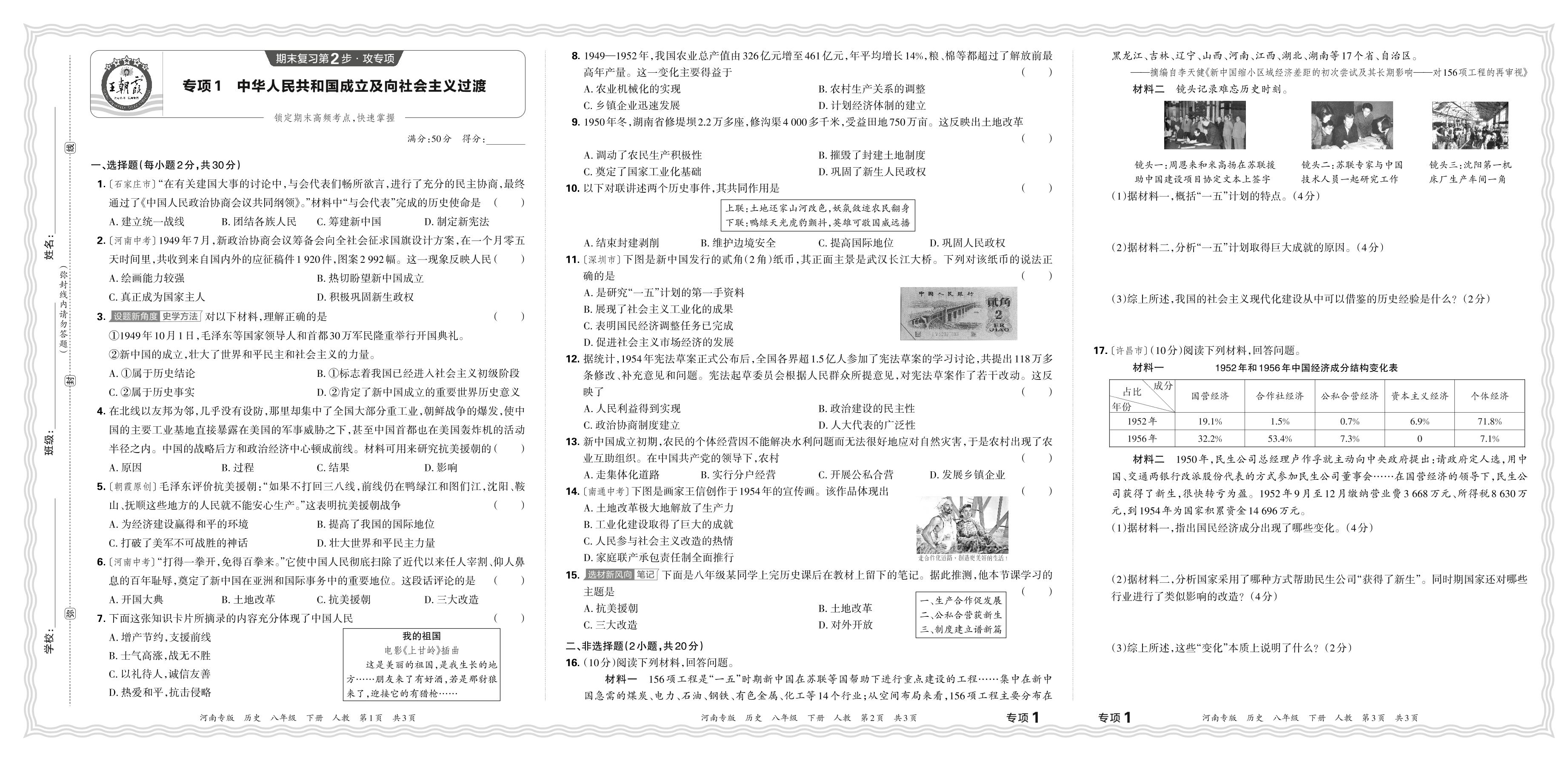 2024春下册八年级历史人教版 期末专项卷河南版·中华人民共和国成立及向社会主义过度【1】