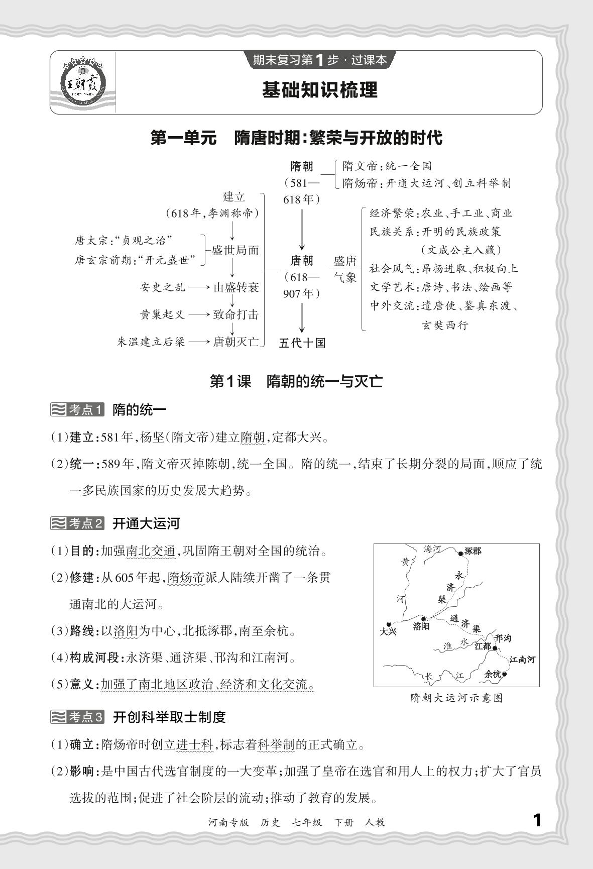 2024春下册七年级历史人教版 期末过课本河南版·基础知识梳理 第一单元 隋唐时期:繁荣与开放的时代