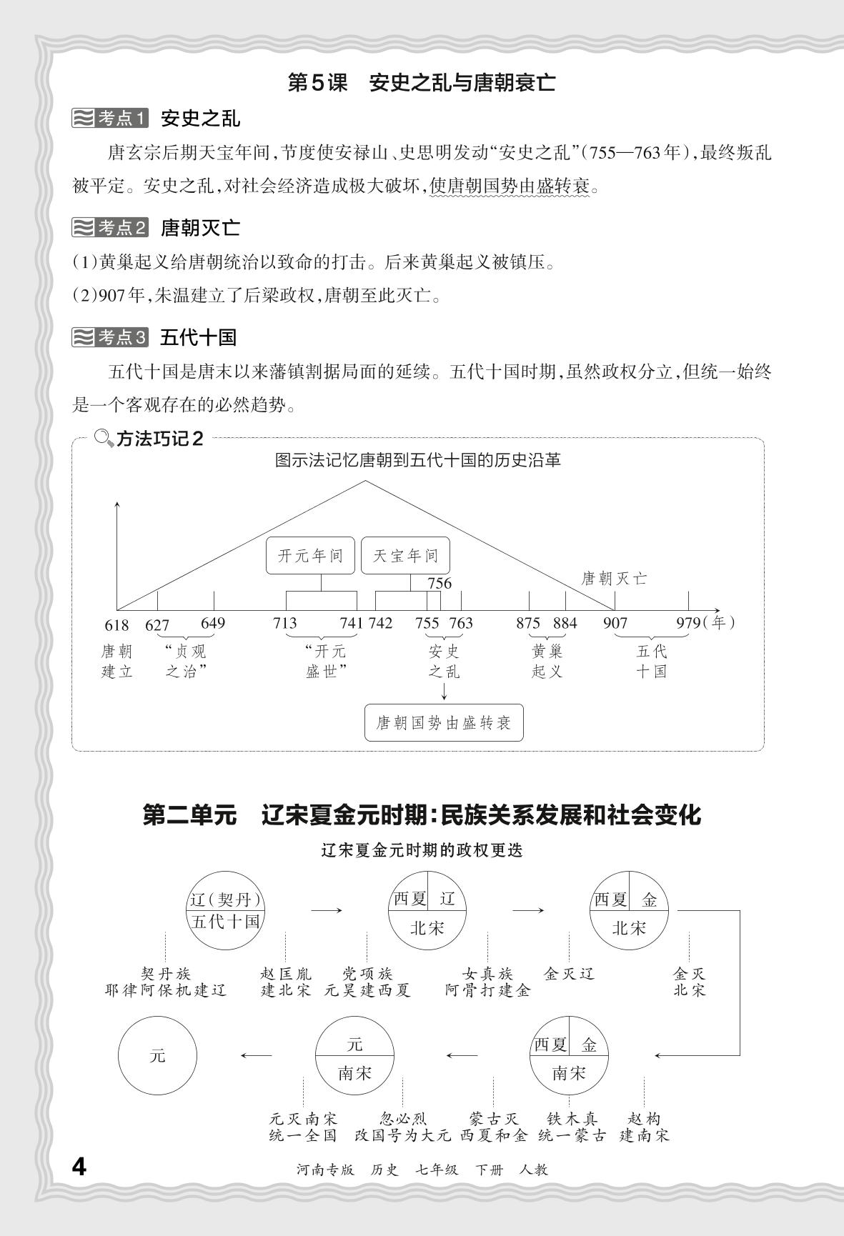 2024春下册七年级历史人教版 期末过课本河南版·基础知识梳理 第二单元 辽宋夏金元时期:民族关系发展和社会变化
