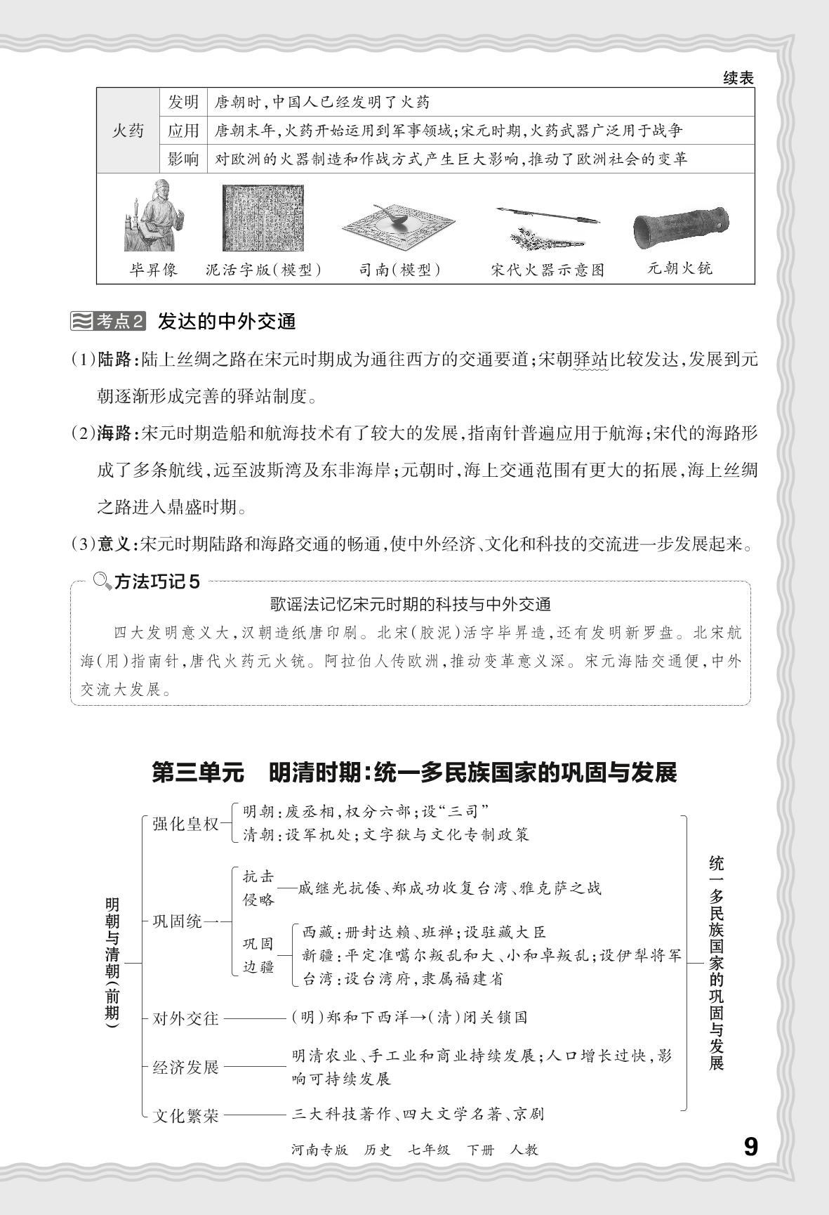 2024春下册七年级历史人教版 期末过课本河南版·基础知识梳理 第三单元 明清时期:统一多民族国家的巩固与发展