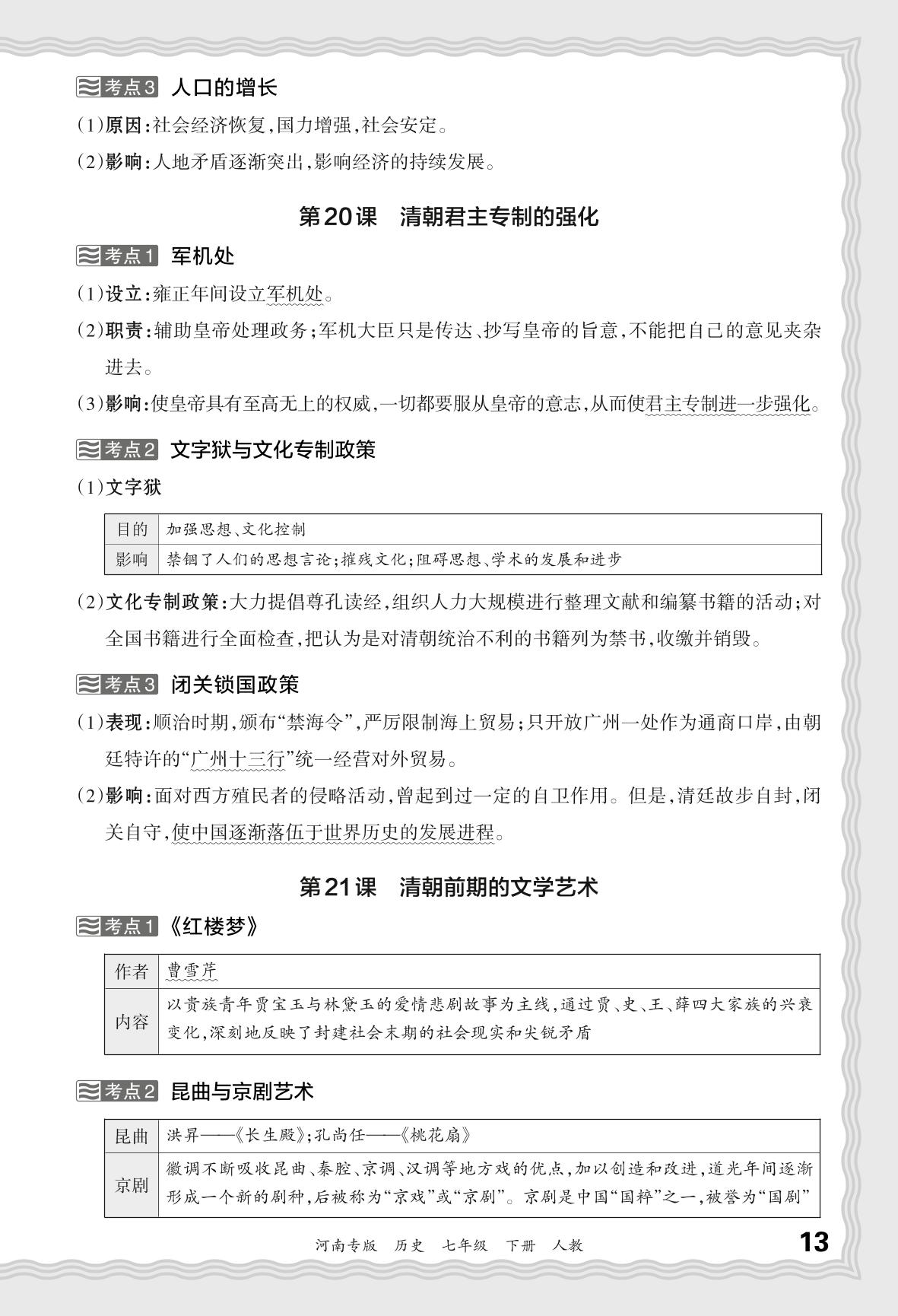 2024春下册七年级历史人教版 期末过课本河南版·基础知识梳理 专项考点整合