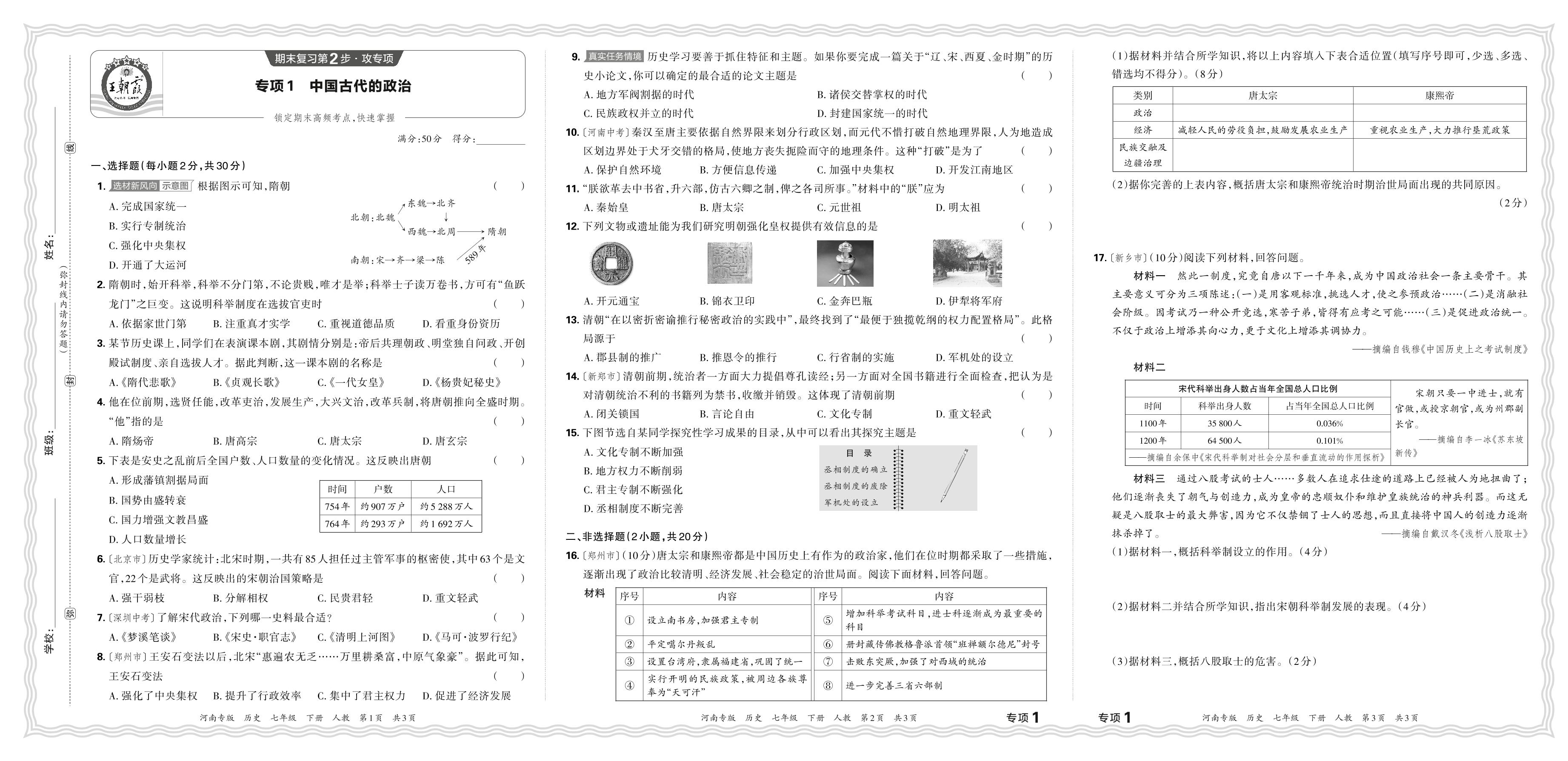 2024春下册七年级历史人教版 期末专项卷河南版·中国古代的政治【1】