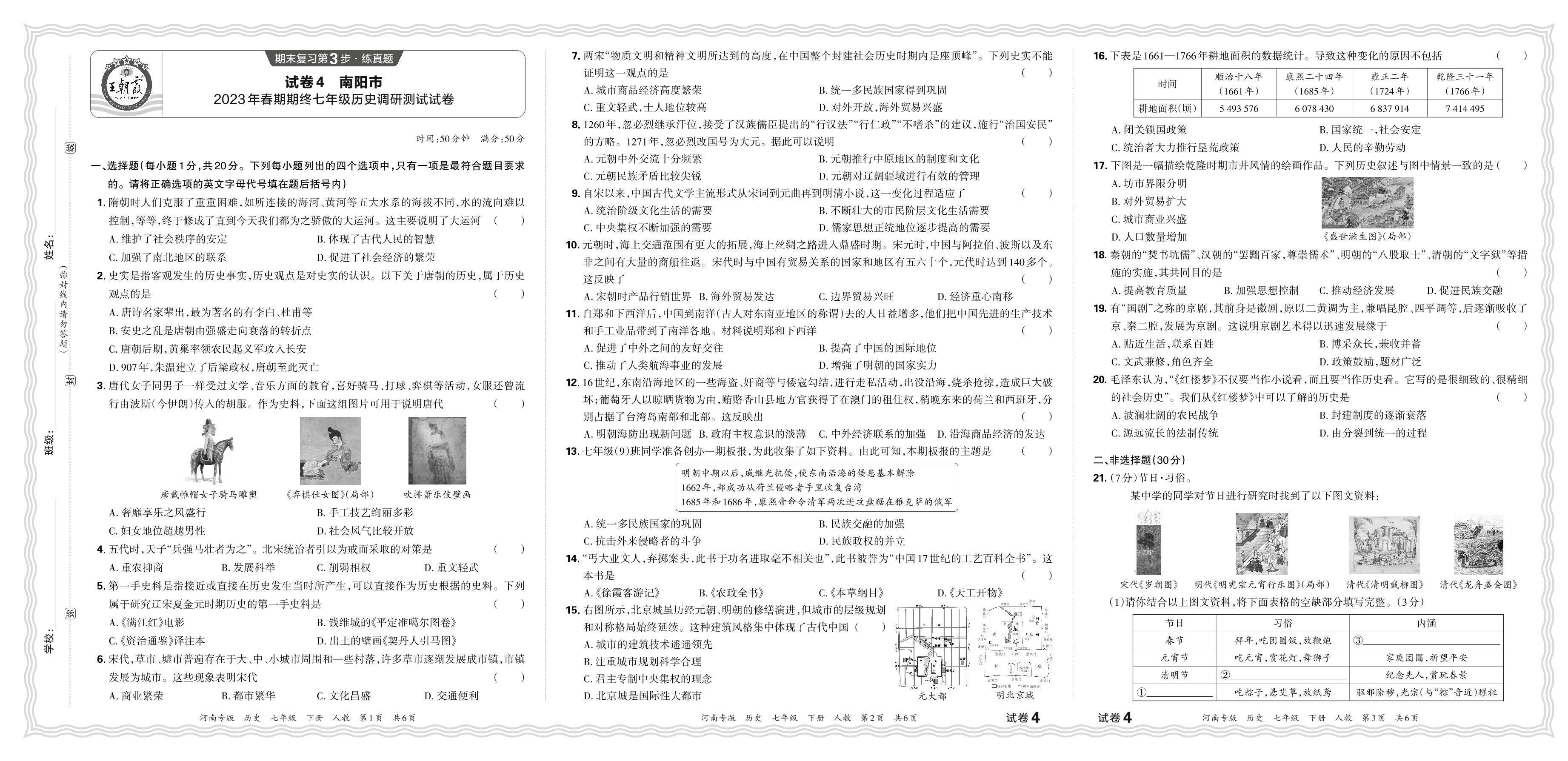 七年级历史人教版下册期末卷