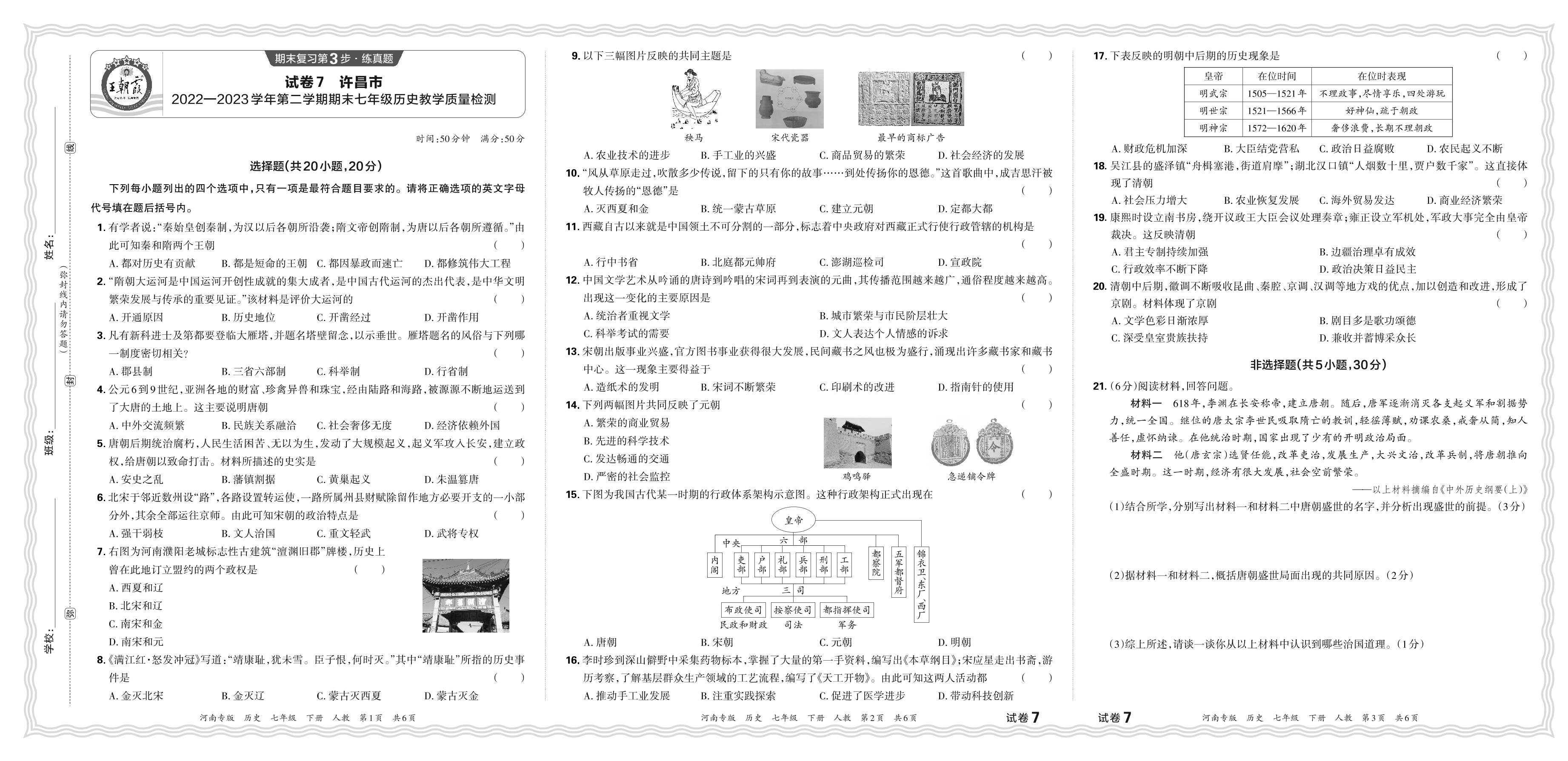 河南省许昌市2022-2023学年第二学期期末七年级历史教学质量检测【7】
