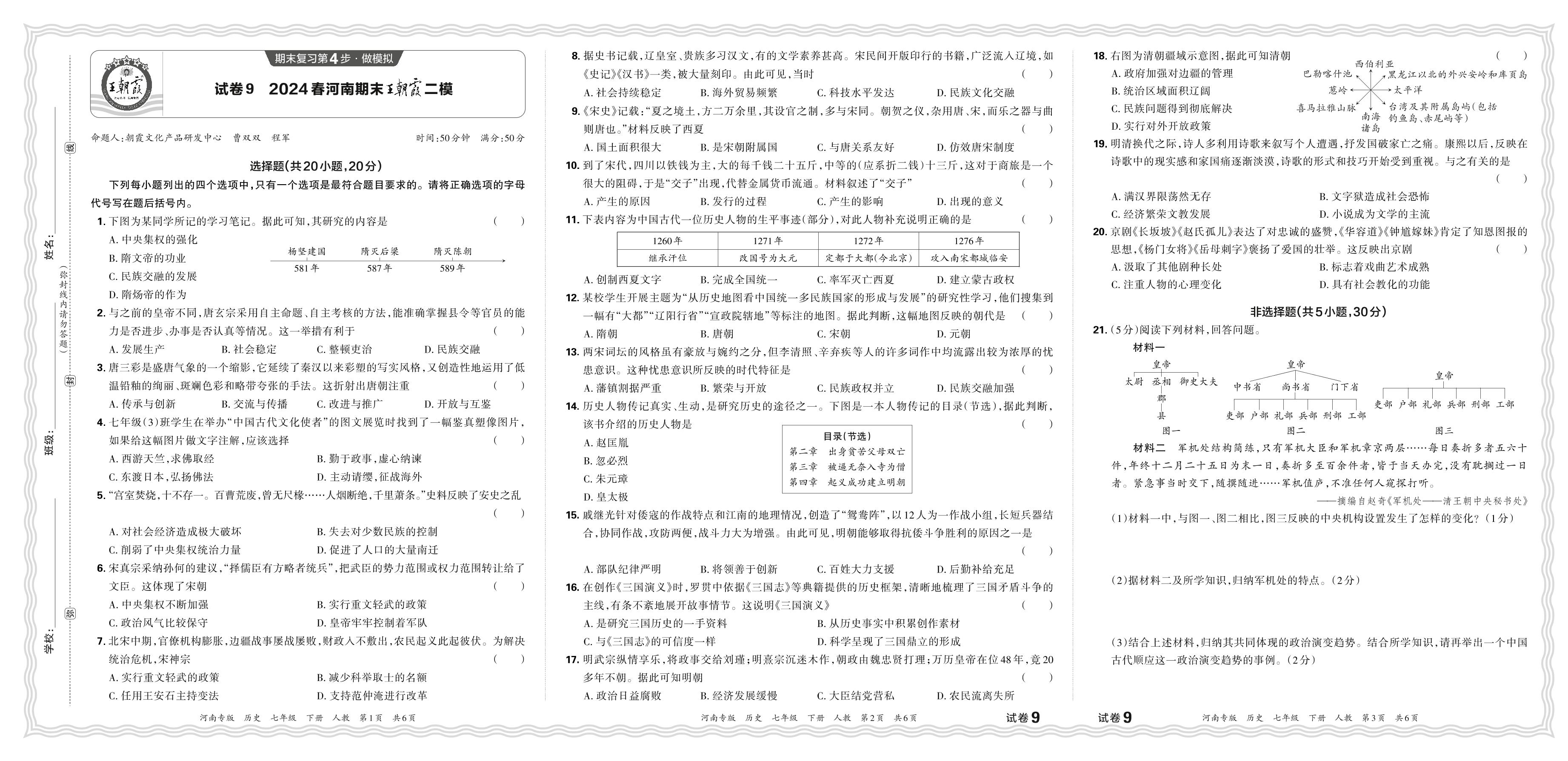 2024春下册七年级历史人教版 河南期末王朝霞二模