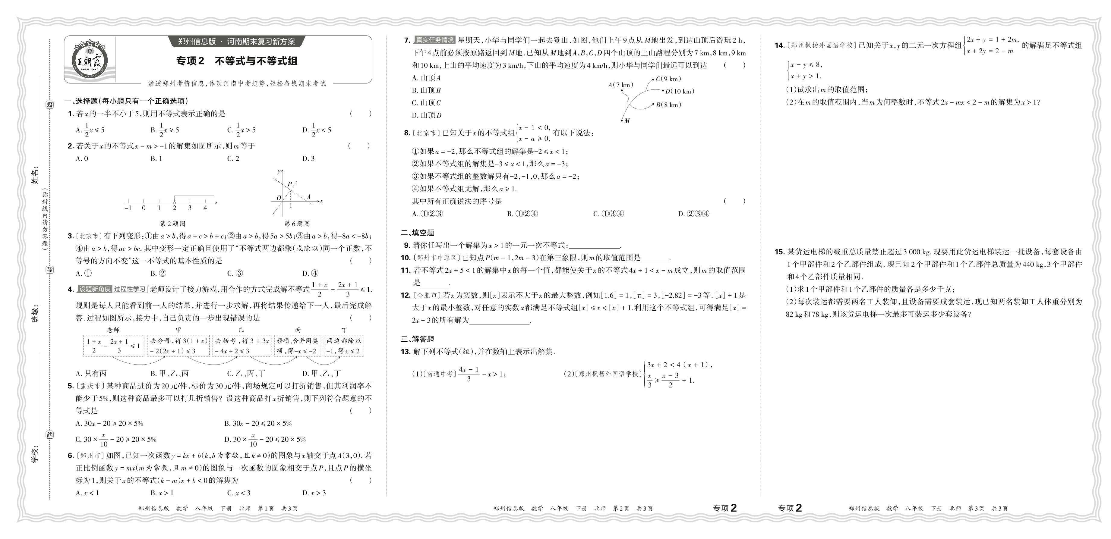 2024春下册八年级数学北师版 期末专项卷郑州版·不等式与不等式组【2】