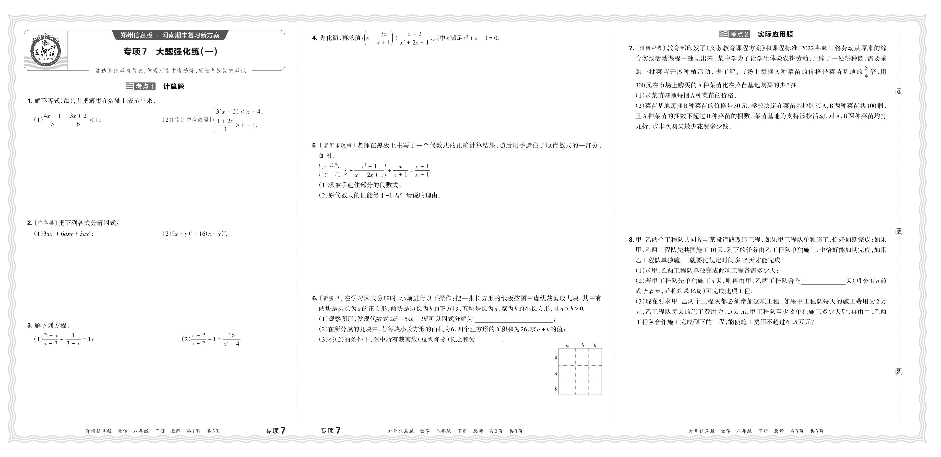2024春下册八年级数学北师版 期末专项卷郑州版·大题强化练(一)【7】