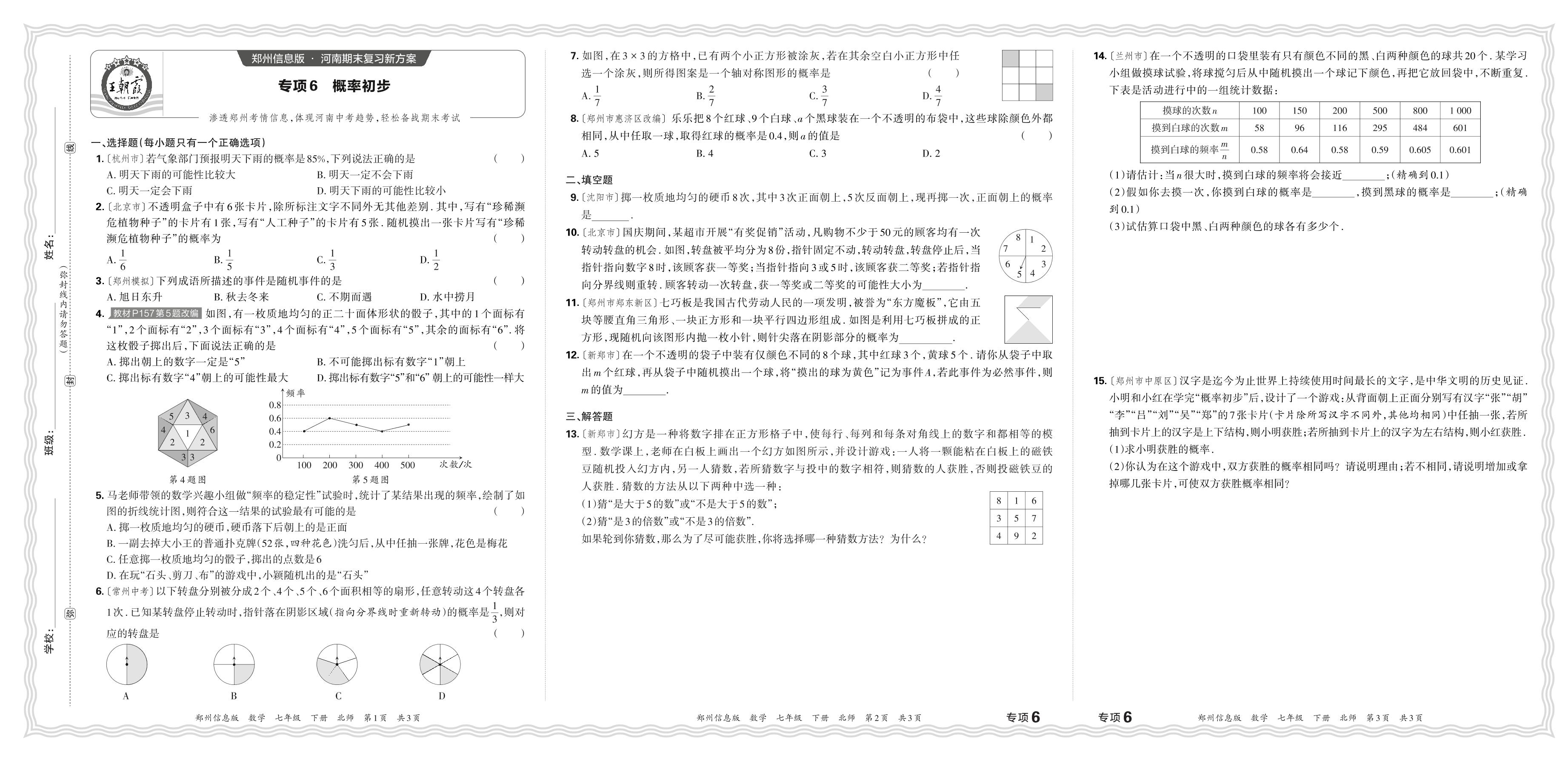 2024春下册七年级数学北师版 期末专项卷郑州版·概率初步【6】