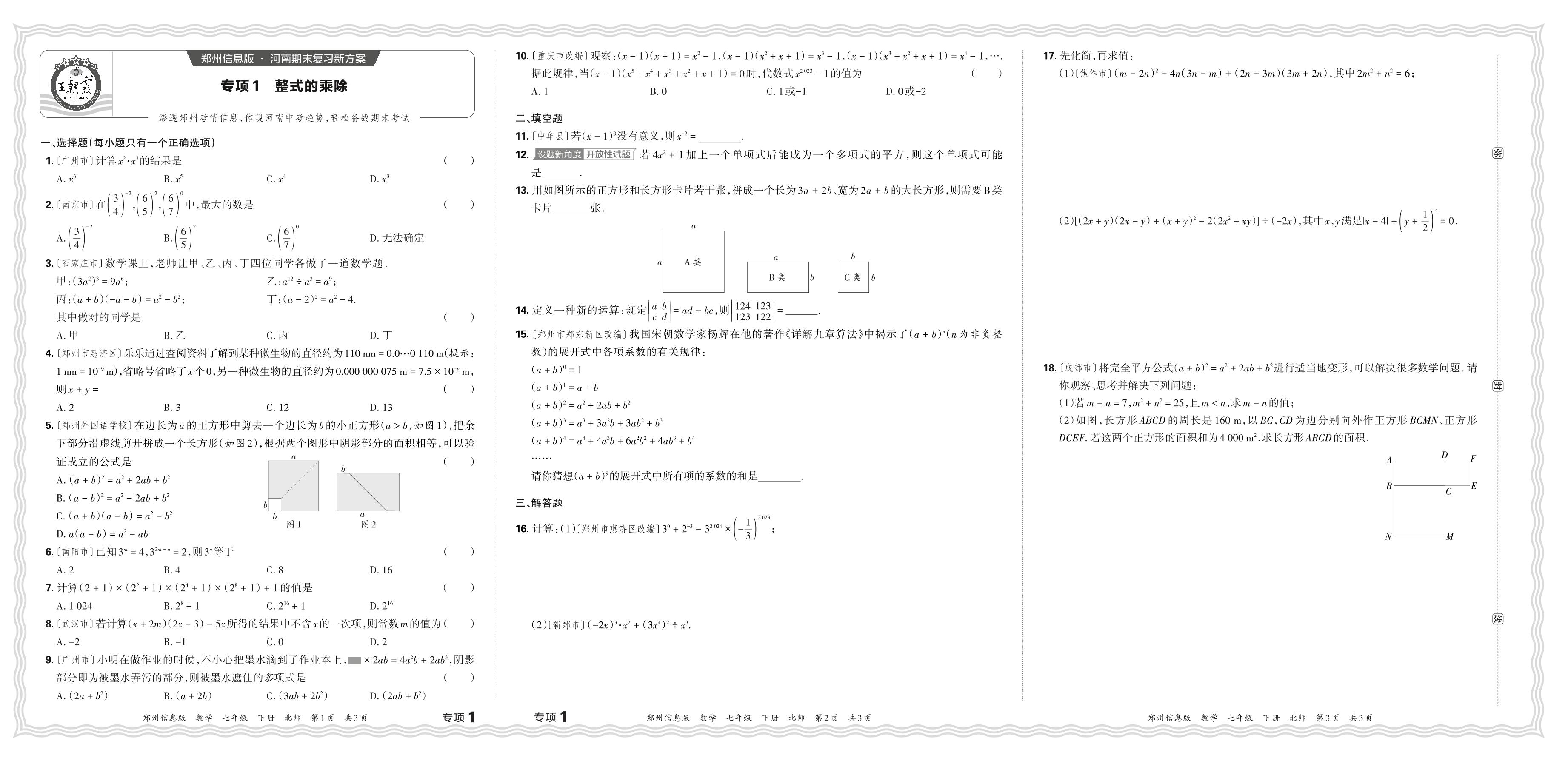 2024春下册七年级数学北师版 期末专项卷郑州版·整式的乘除【1】