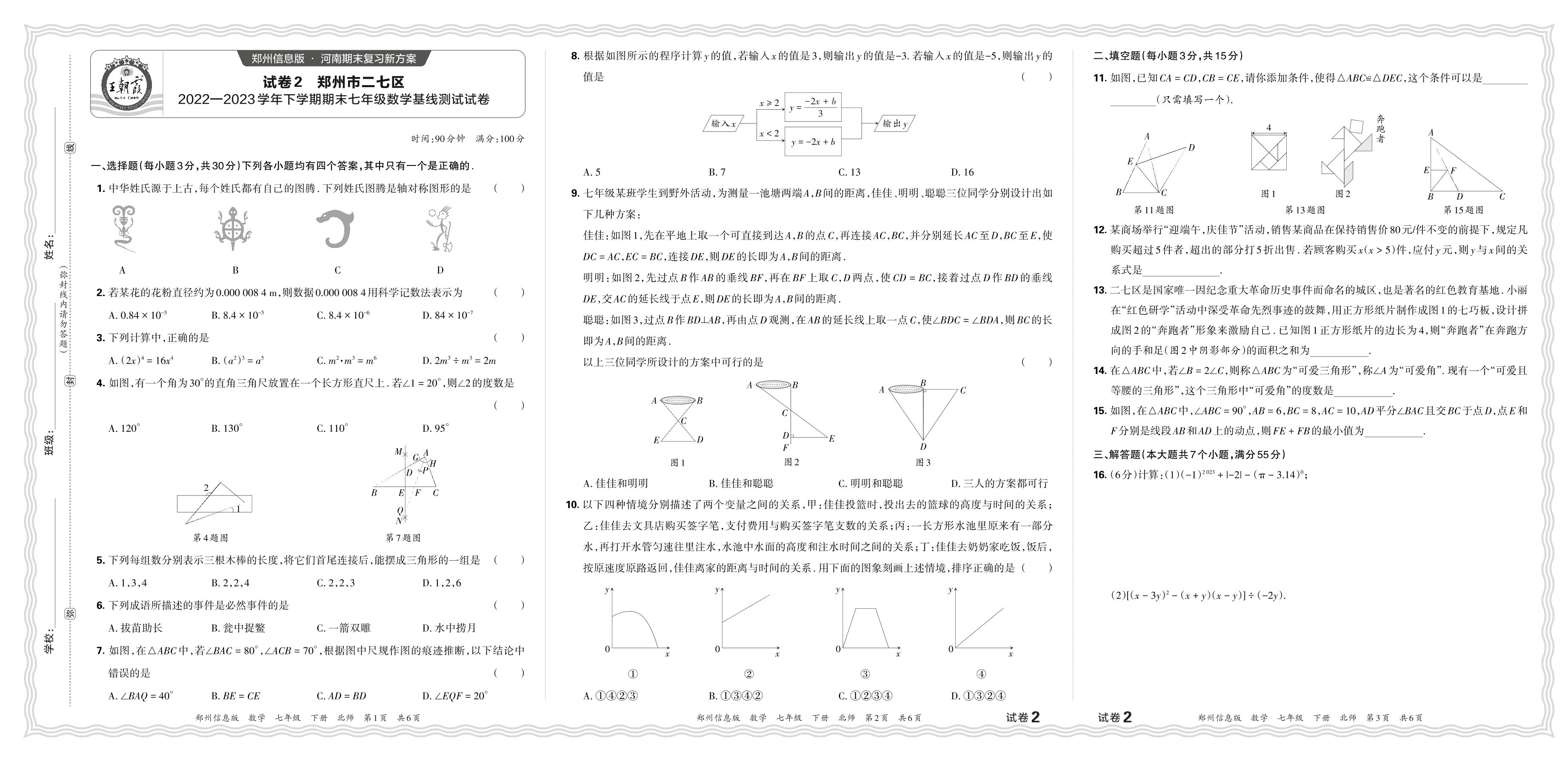 河南省郑州市二七区2022-2023学年下学期期末七年级数学基线测试试卷(北师版)【2】
