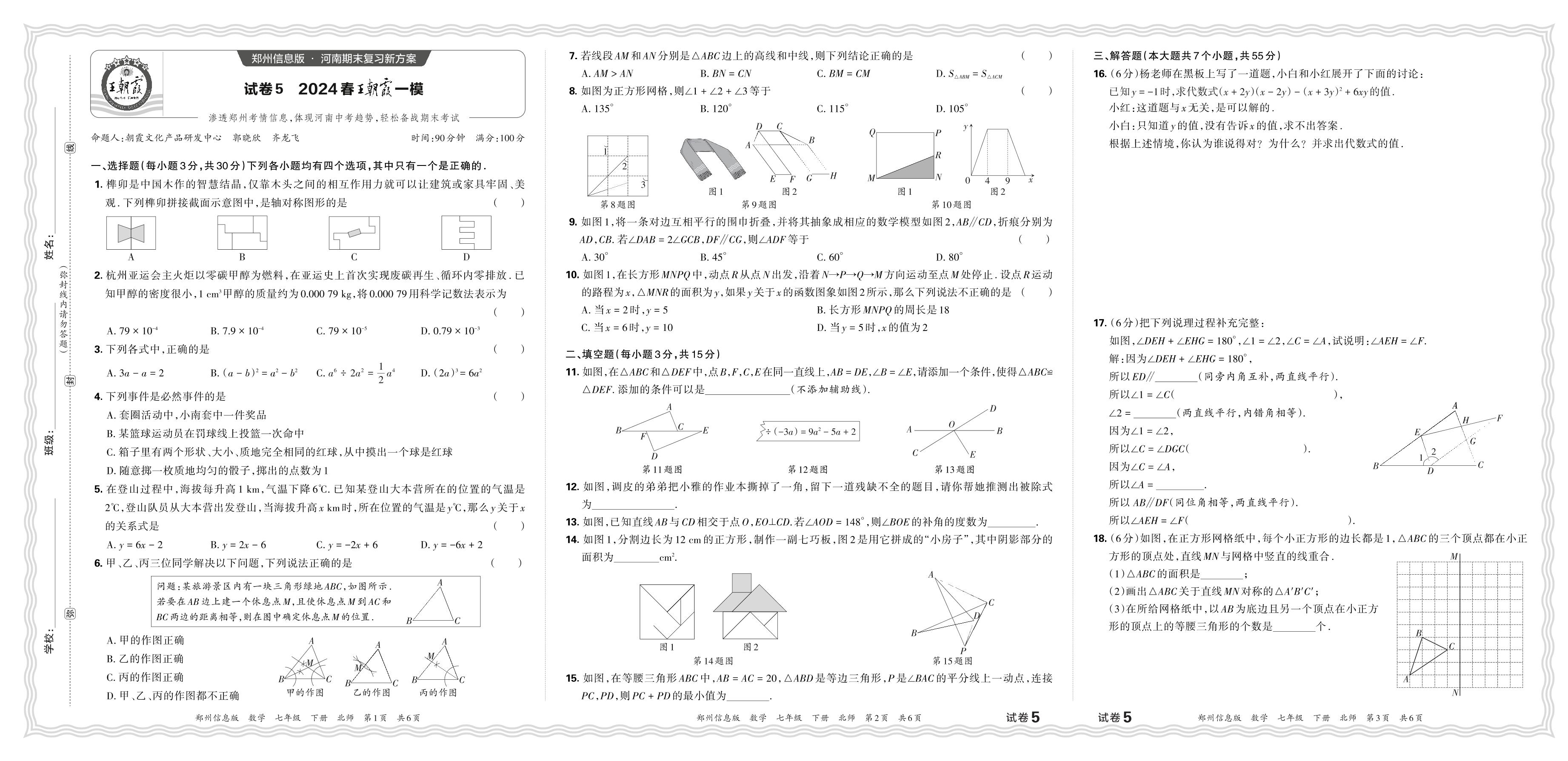 2024春下册七年级数学北师版 郑州期末王朝霞一模