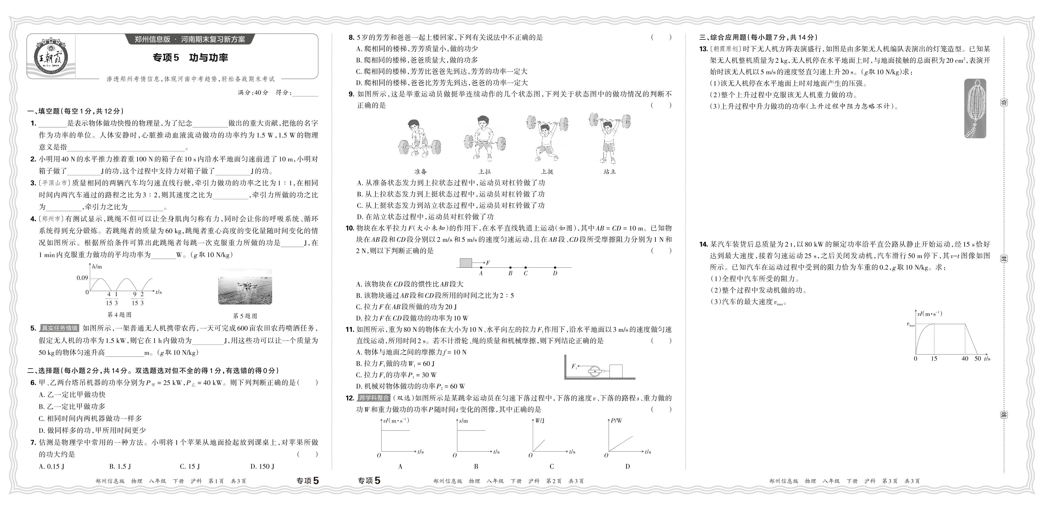 2024春下册八年级物理沪科版 期末专项卷郑州版·功与功率【5】