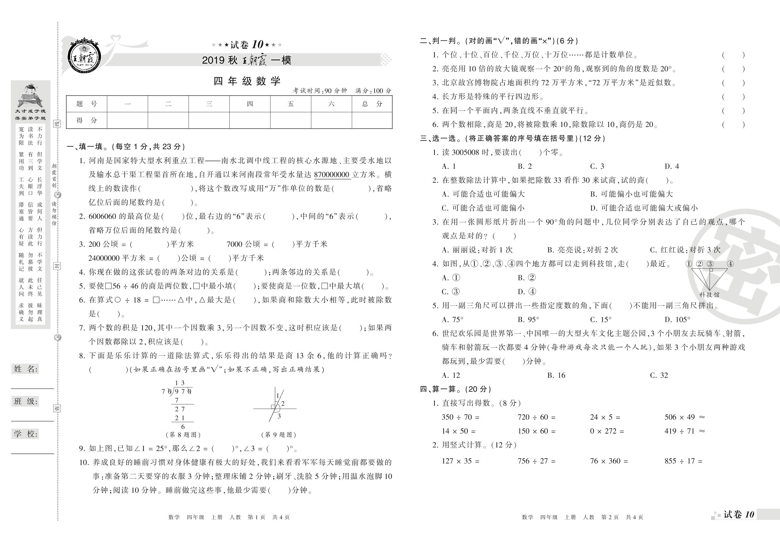 王朝霞期末模拟卷四年级上册数学(人教版)_R210804144140【10】